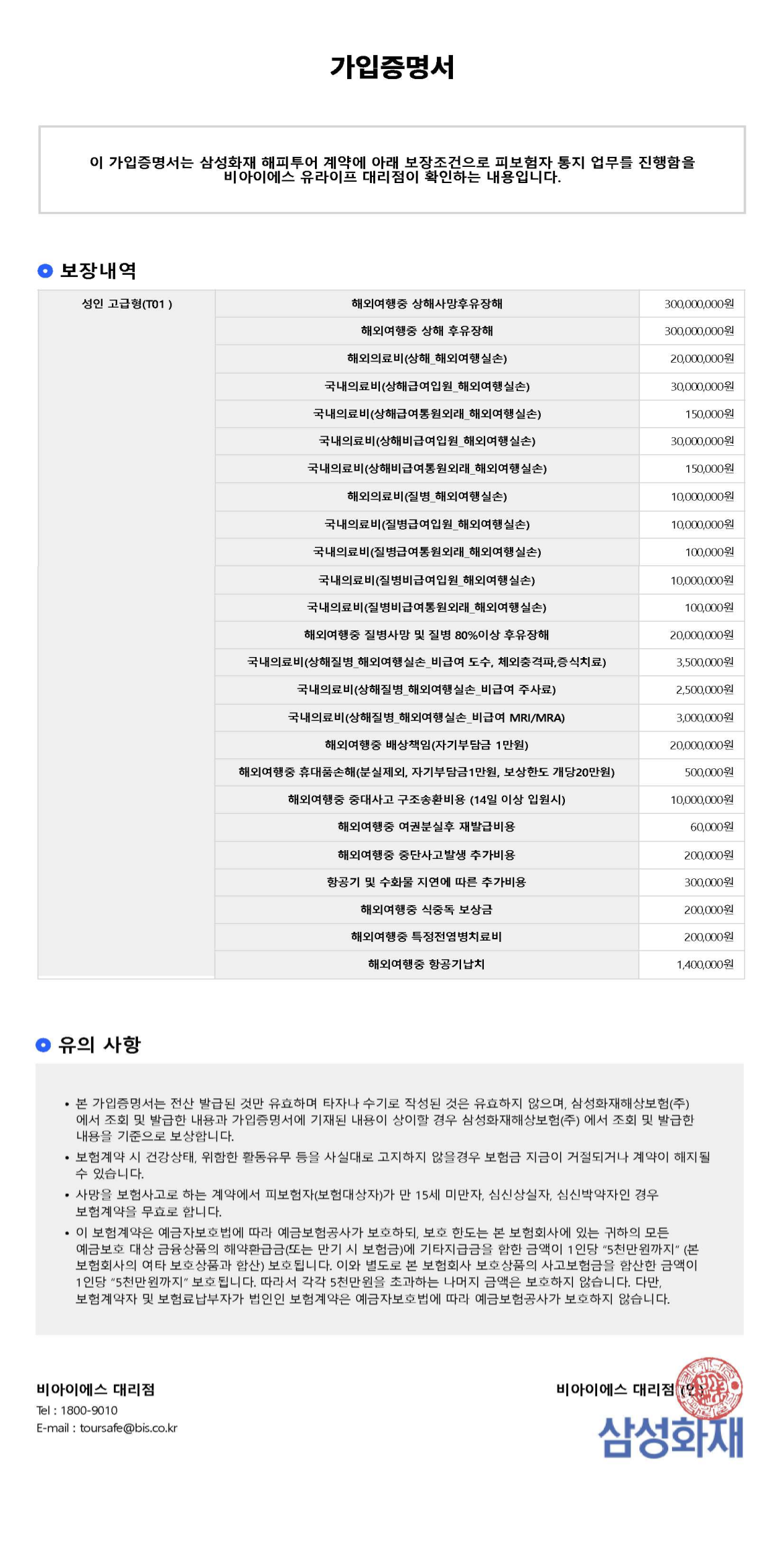 ※ 3억 원 고급형 한도 보험으로 업그레이드!