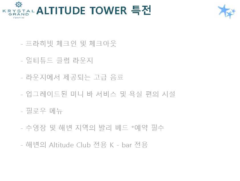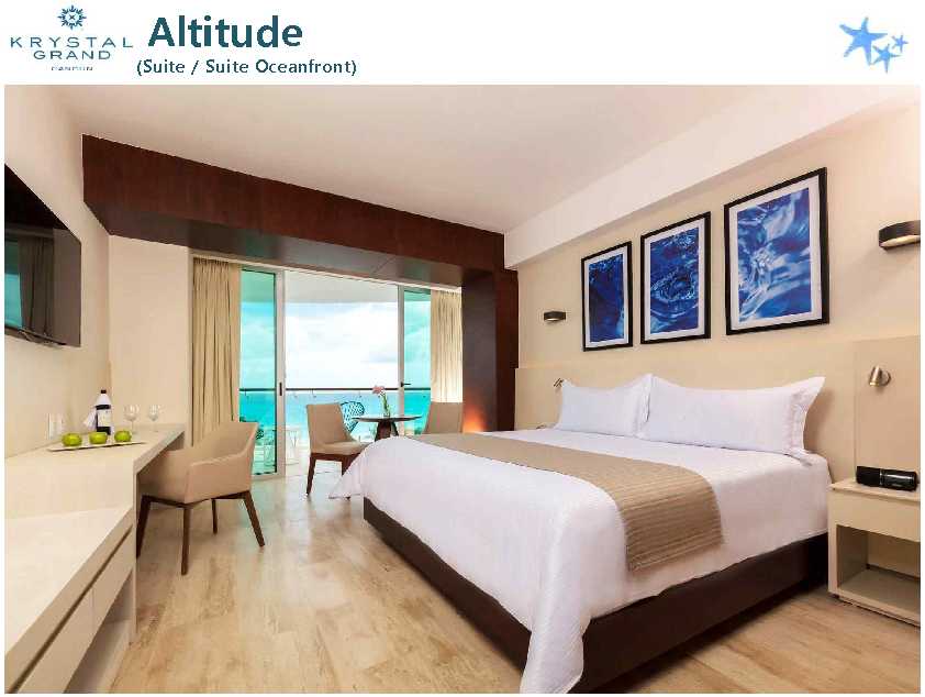 푸른 카리브해와 백사장을 배경으로 한 Krystal Altitude Cancun은 럭셔리 올인클루시브 리조트로, 가족, 커플, 그리고 친구들과 함께 즐길 수 있는 특별한 휴양지를 제공합니다. 고급스러운 다이닝, 다양한 액티비티, 그리고 프리미엄 서비스를 통해 잊지 못할 휴식을 선사합니다.
