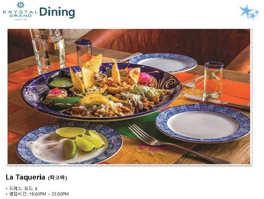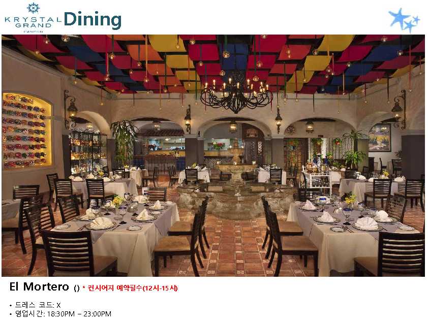 - La Cascada: 멕시칸 요리를 현대적으로 재해석한 다이닝 경험.