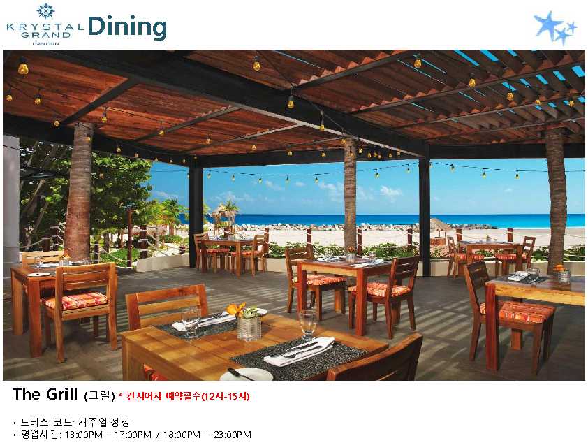 - The Grill: 신선한 해산물과 그릴 요리를 즐길 수 있는 해변 레스토랑.