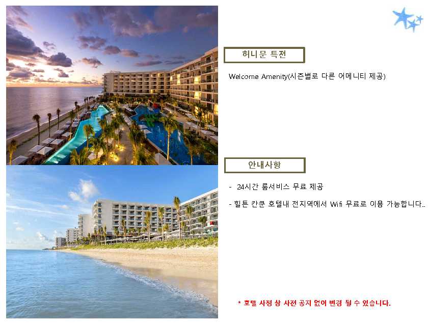 ※ 칸쿤 호텔은 날짜 별 금액 변동이 심한 지역으로 반드시 담당자 확인 후 진행하심을 요청 드립니다.