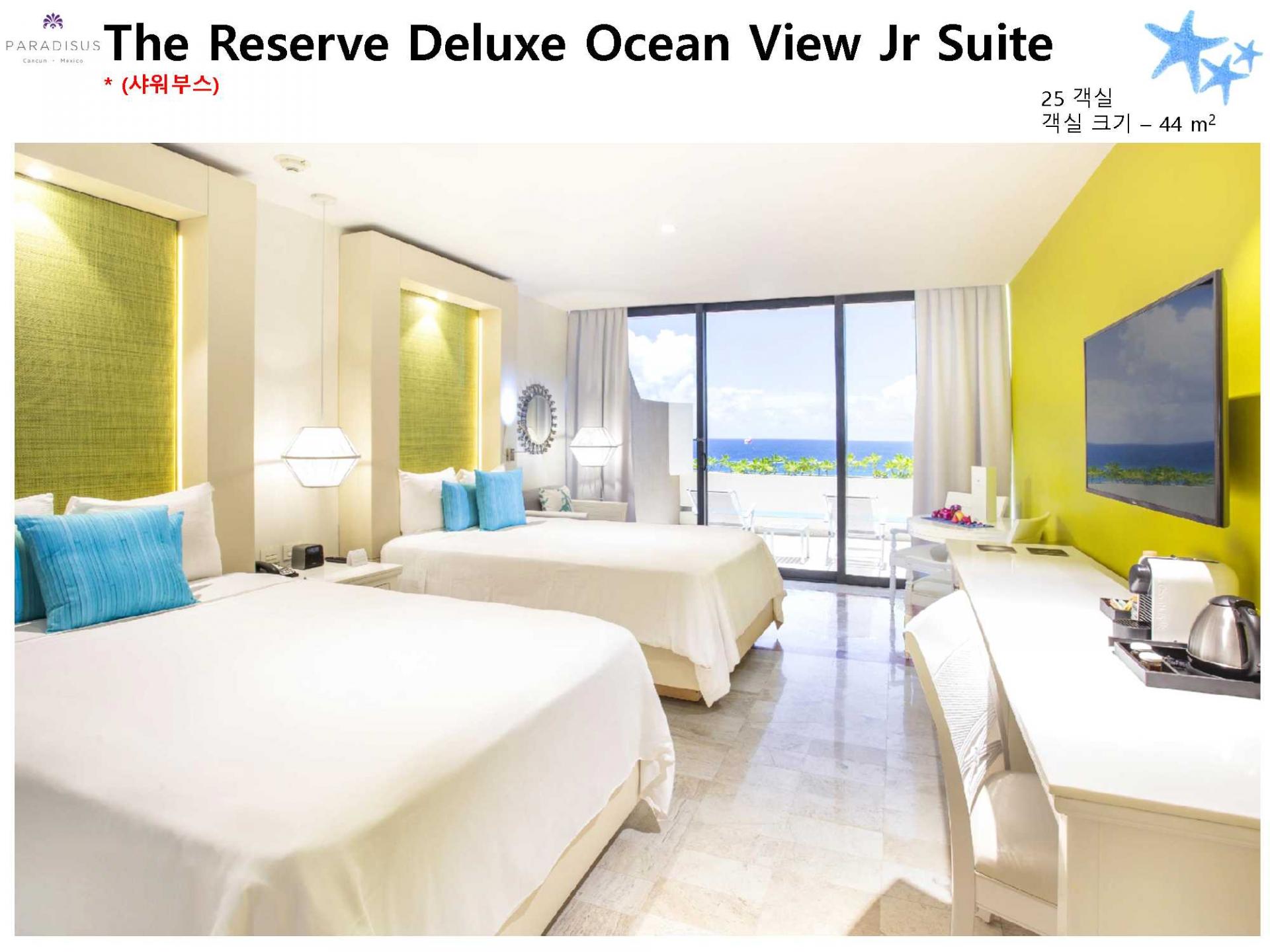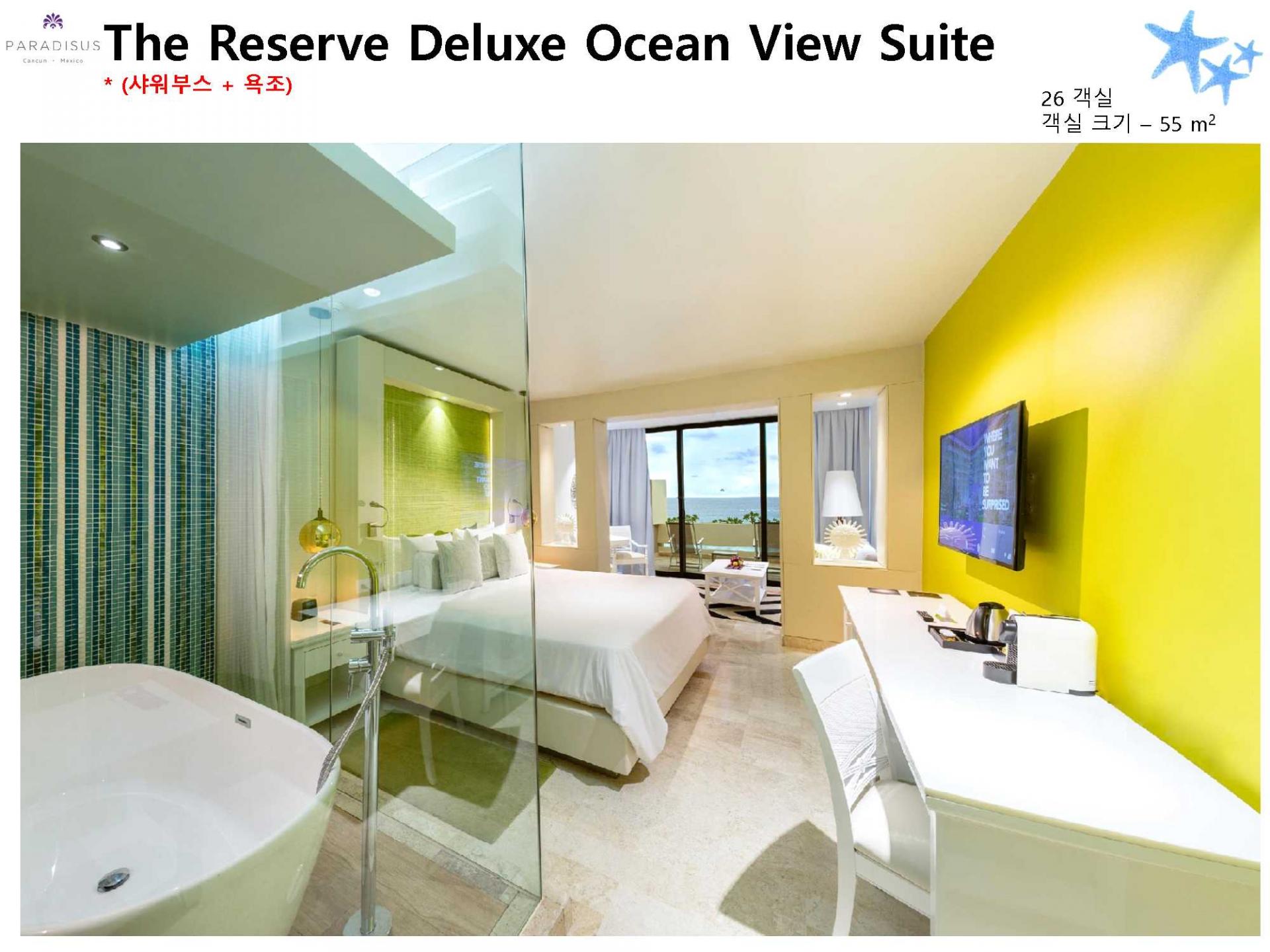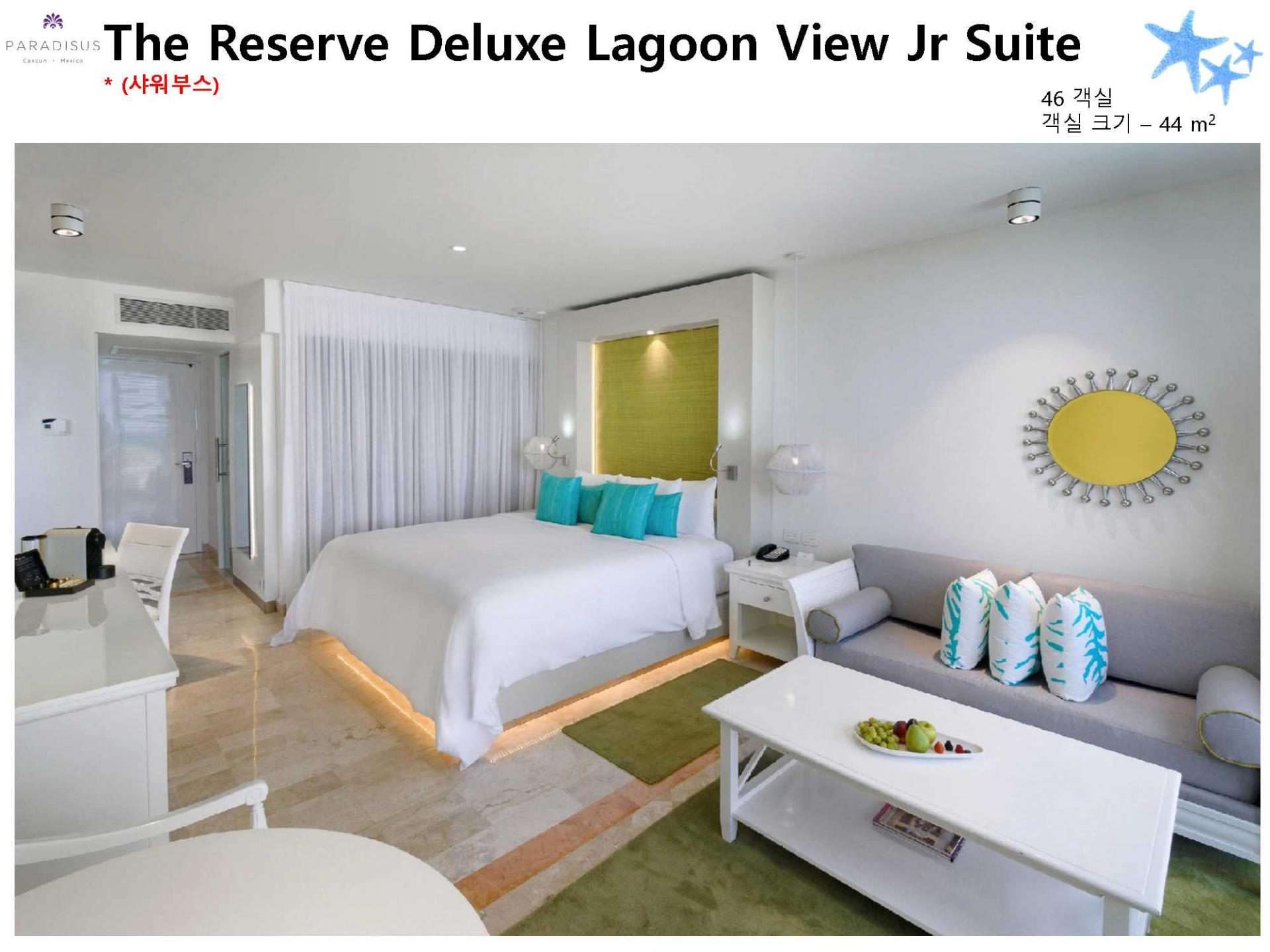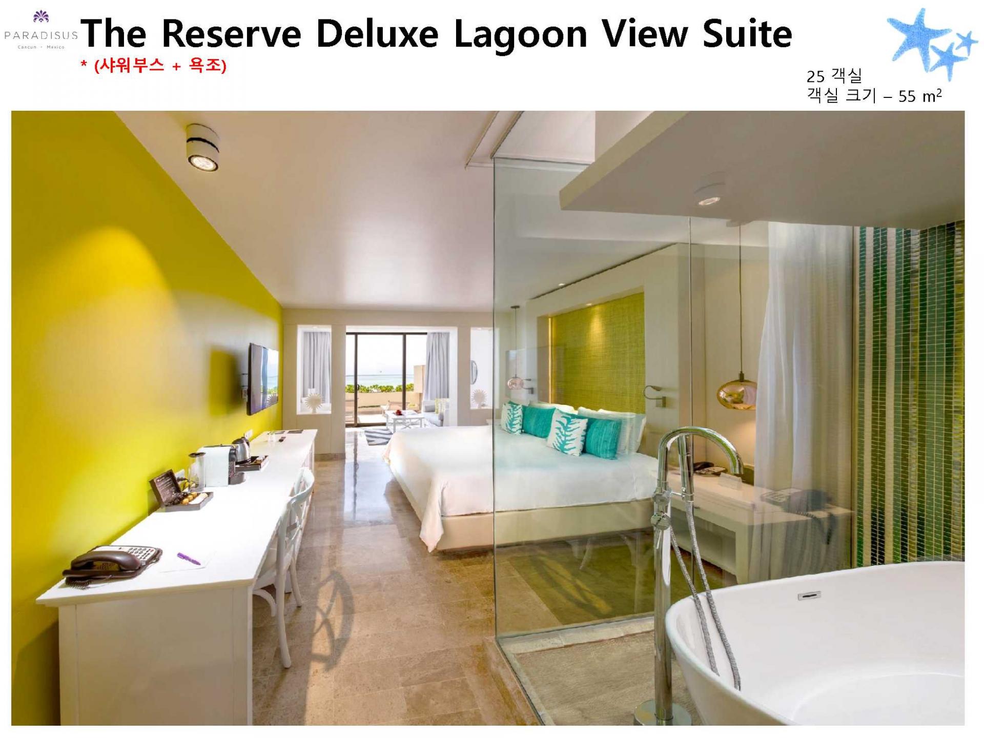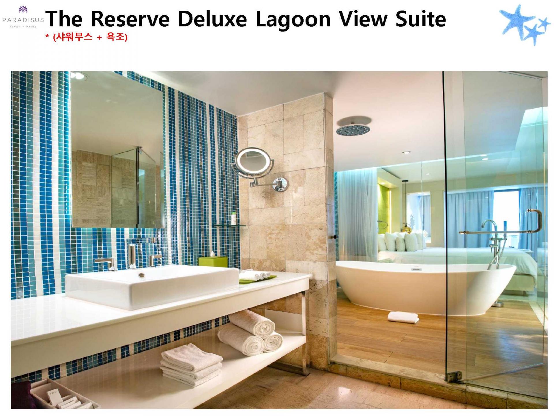 | 객실 설명 | *Luxury Junior Suite Ocean View *The Reserve Deluxe Lagoon View Junior Suite *The Reserve Deluxe Ocean View Junior Suite ( 샤워 부스만 있습니다. ) *The Reserve Deluxe Lagoon View Suite *The Reserve Deluxe Ocean View Suite ( 욕조 + 샤워부스 있습니다. ) |