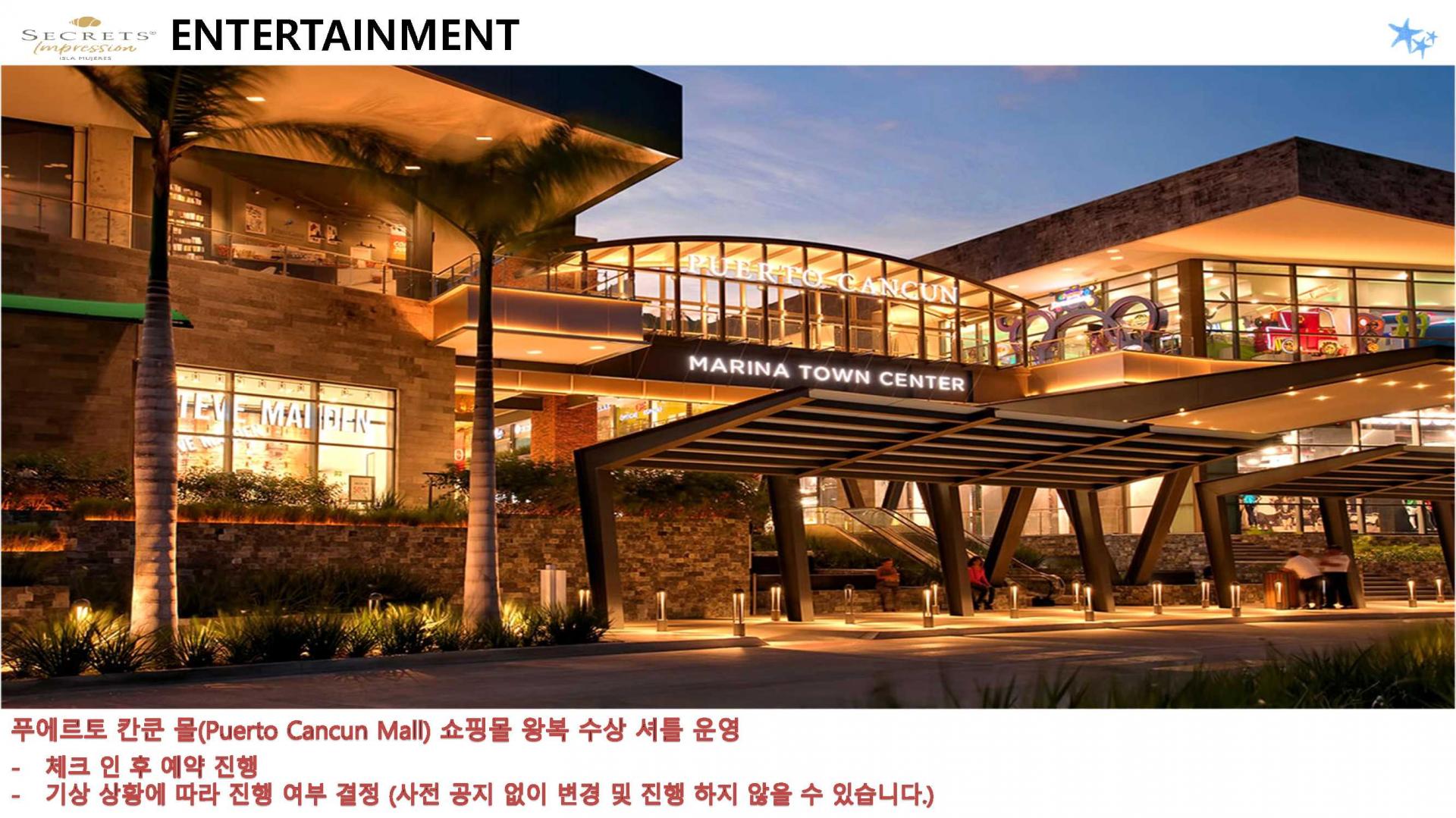 1) 체크 인 당일 - 칸쿤 공항 저녁 ~ 21시 이전 도착 필수 (마지막 배 편 약 23시)