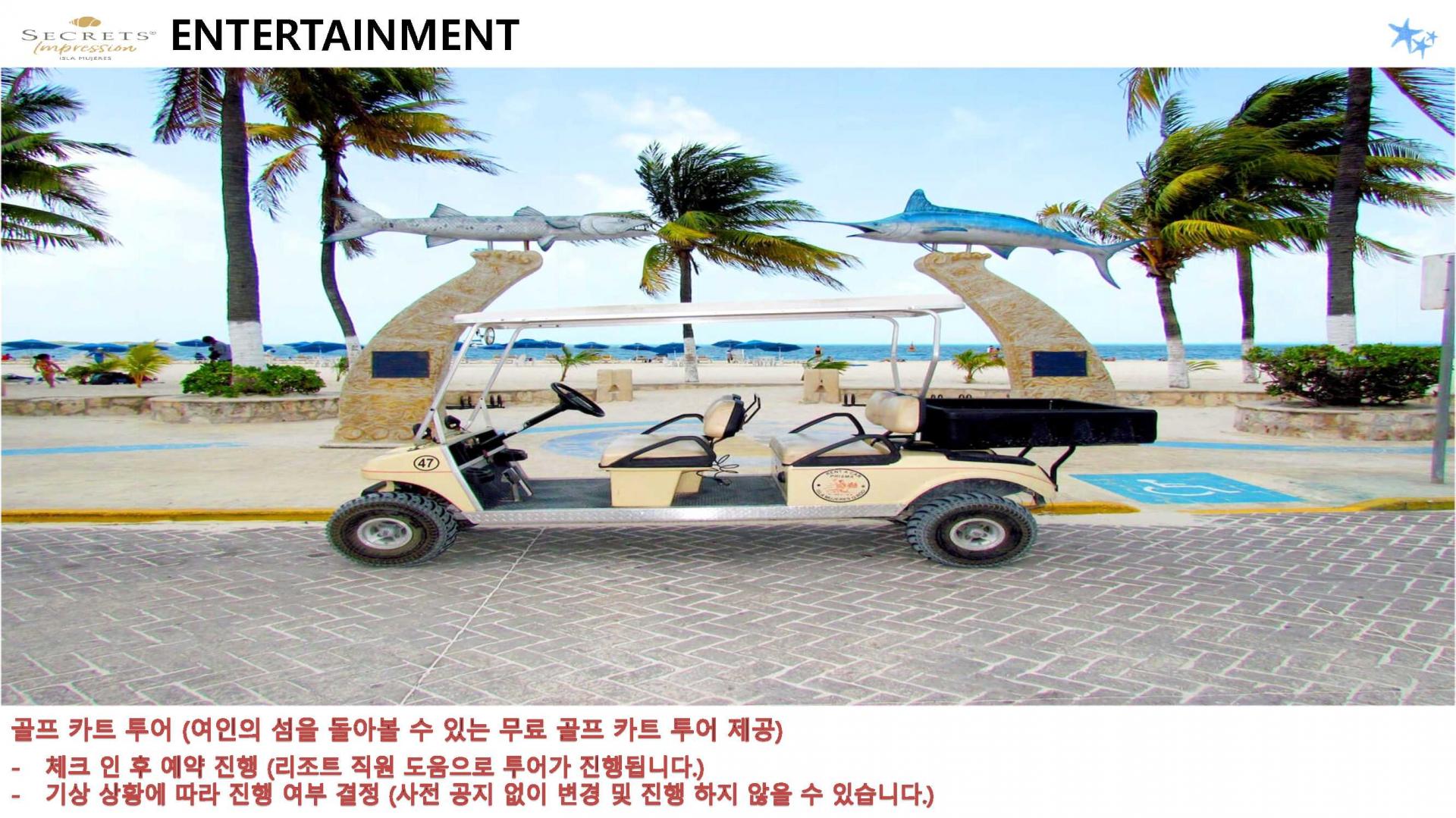 *섬 내에서는 골프카트 또는 셔틀을 통해 쉽게 이동 가능.