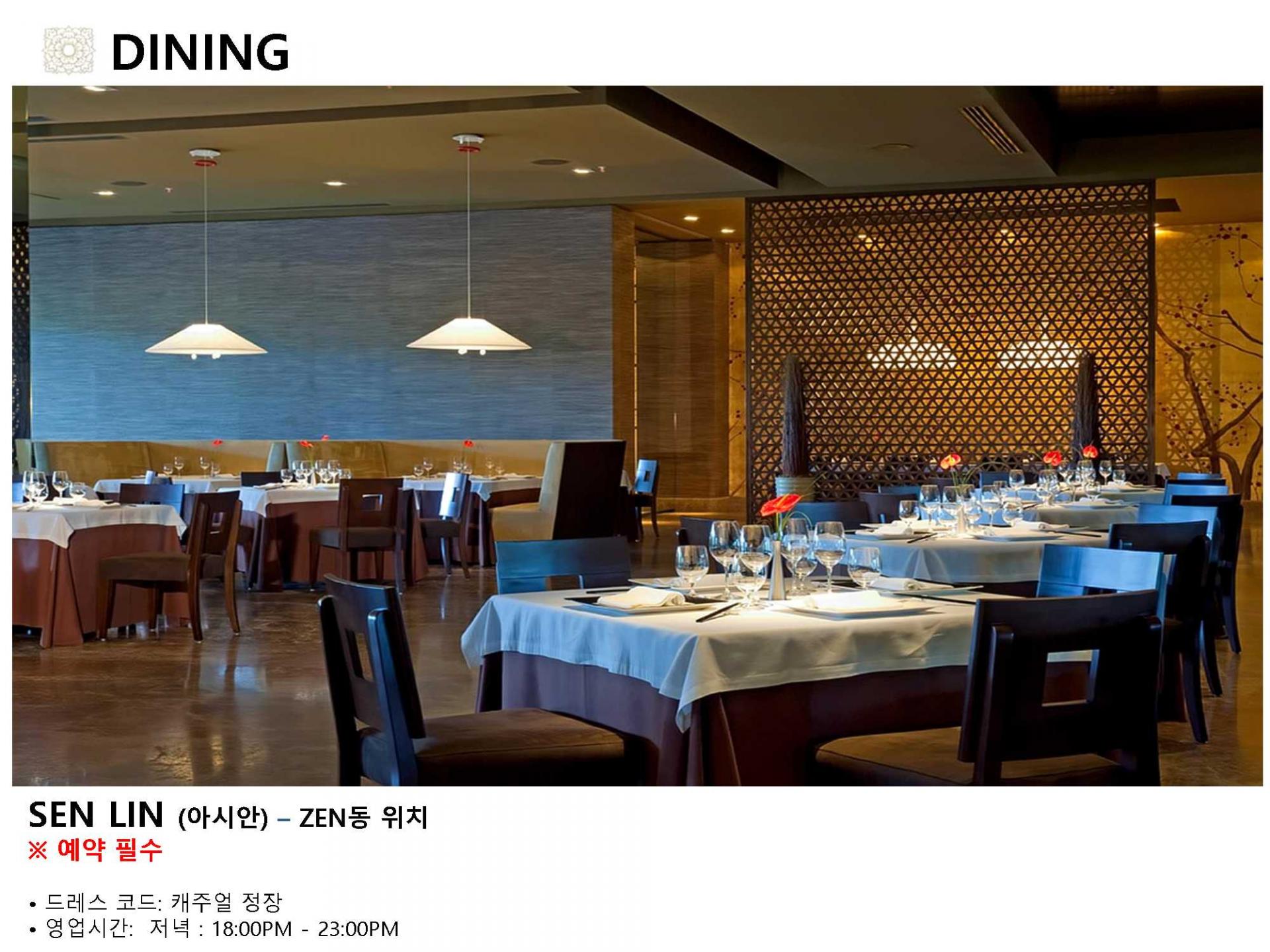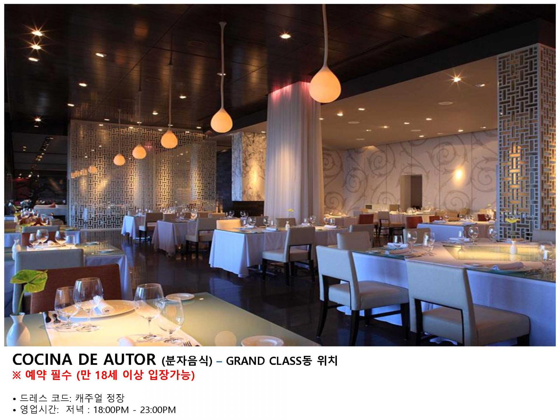 - 8개 이상의 레스토랑에서 글로벌 요리와 프리미엄 음료 무제한 제공.