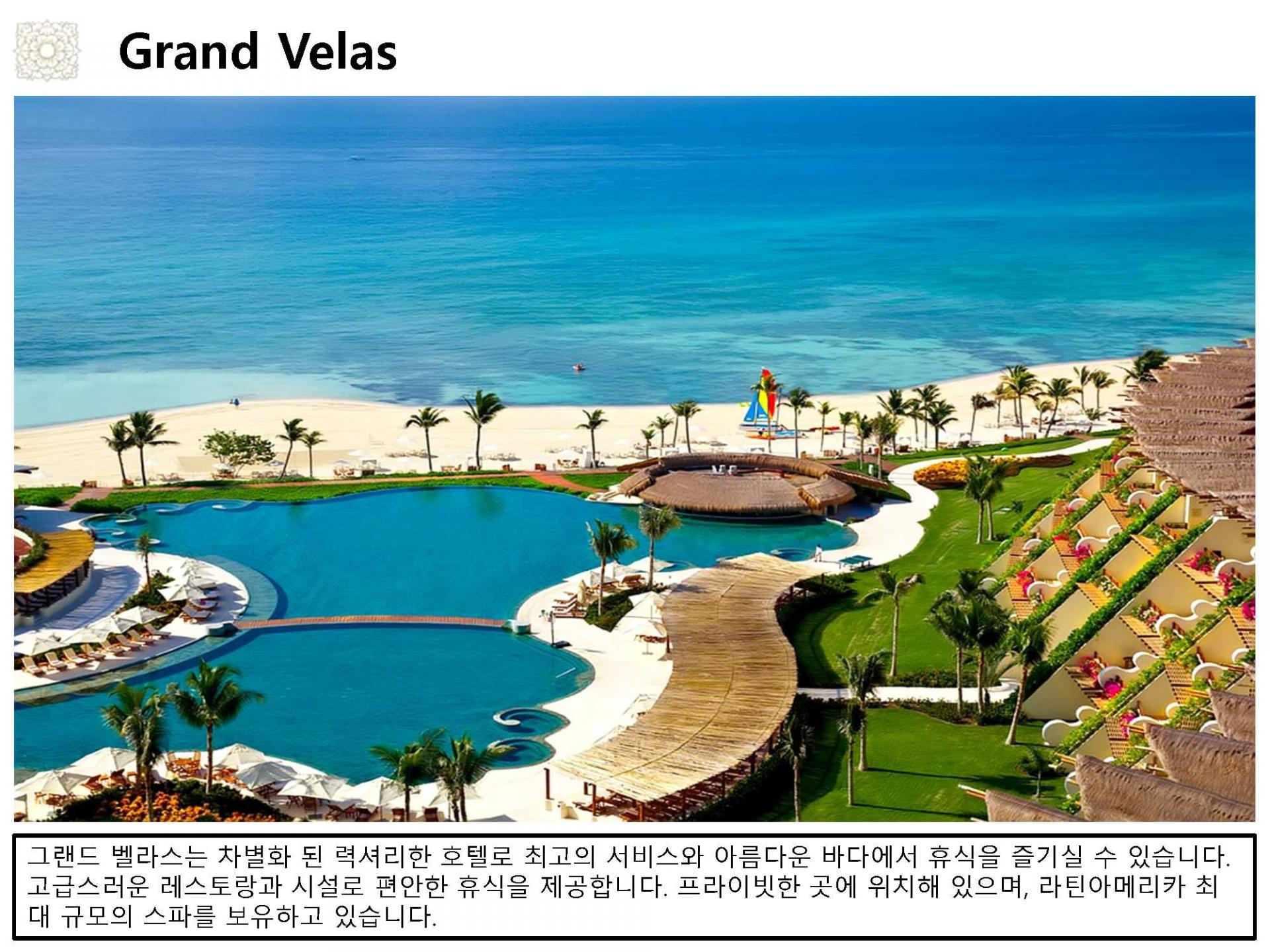 리비에라 마야의 푸른 카리브해와 열대 정글이 어우러진 Grand Velas Riviera Maya는 프리미엄 올인클루시브 리조트로, 가족, 커플, 또는 특별한 여행을 계획하는 모든 분들에게 잊지 못할 경험을 선사합니다. 세계적인 미식 다이닝, 맞춤형 서비스, 그리고 자연과 조화된 럭셔리 환경을 제공합니다.