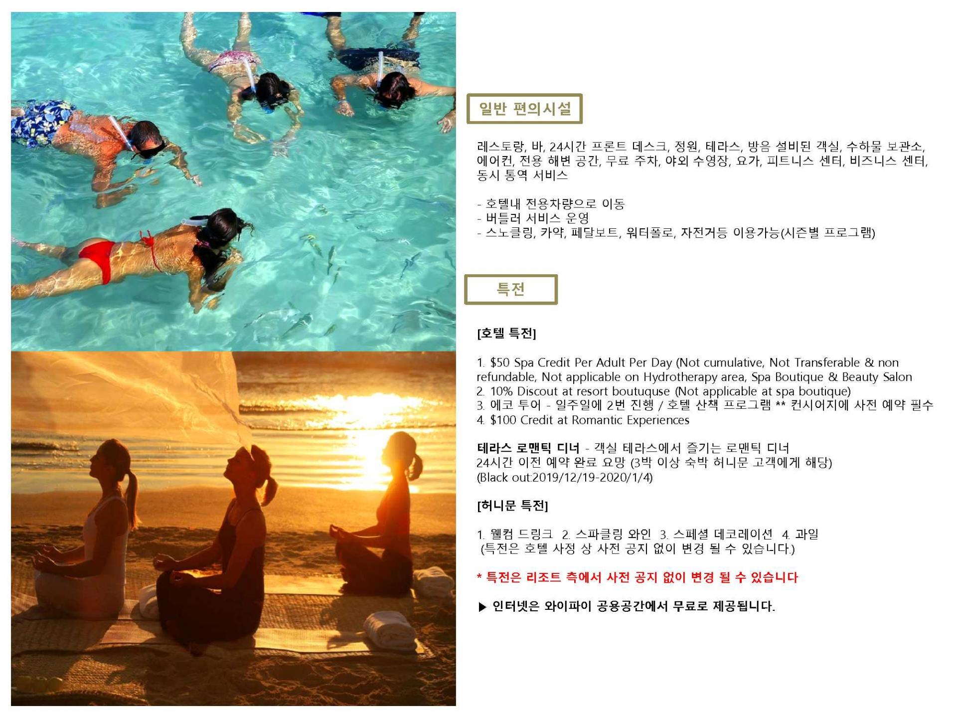 스파 크레딧 프로모션 | 1인 1박 당 $50 스파 크레딧 제공 마사지 이용 시 사용 가능합니다. |