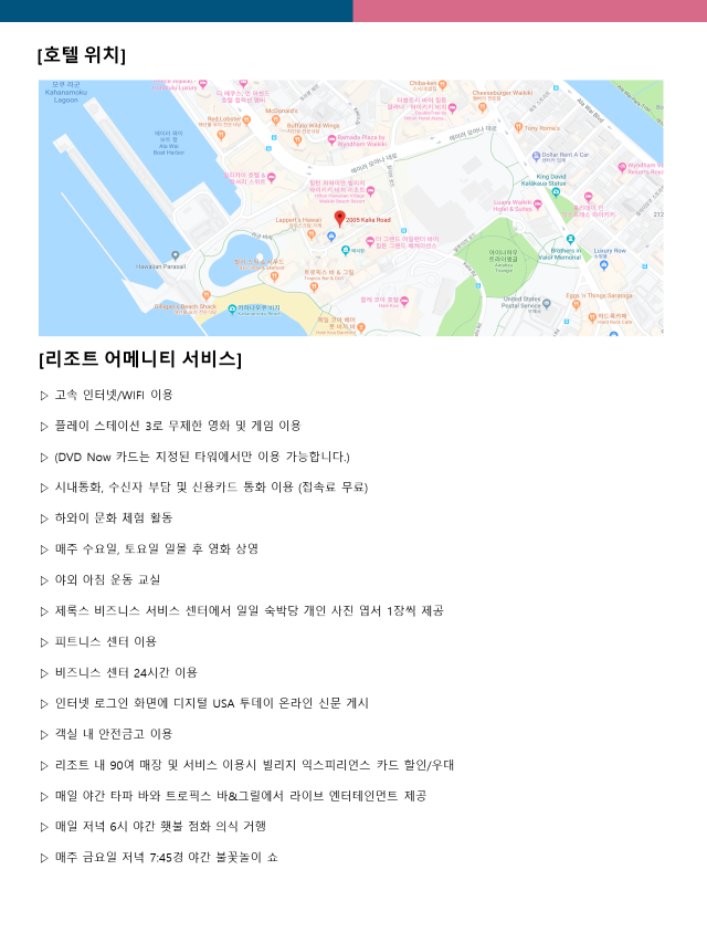 하와이 오아후섬 와이키키 비치(Waikiki Beach) 북서쪽에 위치한 대형 4성급 럭셔리 리조트로,