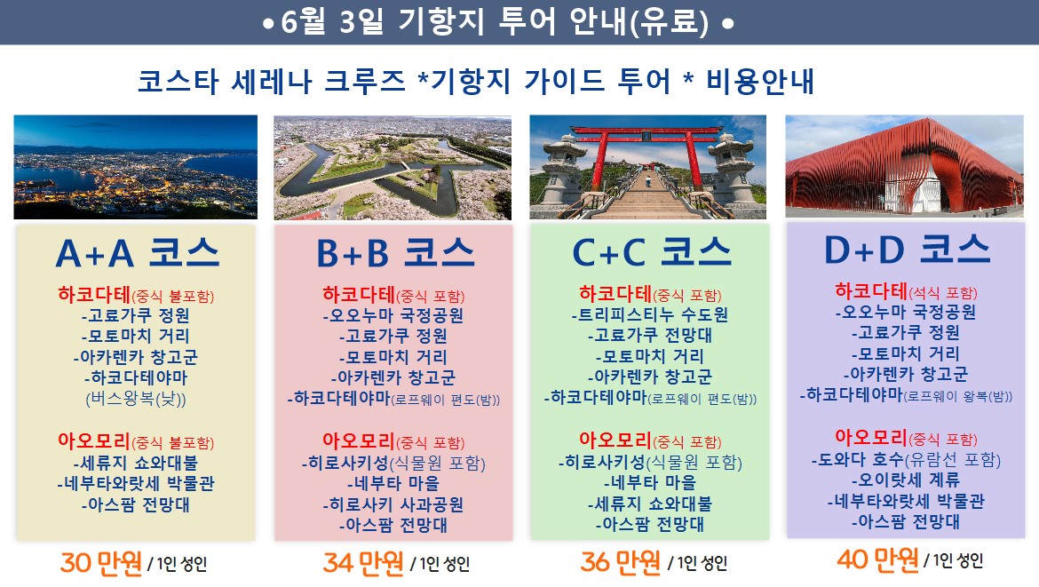 ② 부산 출발 하여 일본 니이카타 / 하코다테 2곳 기항지 선택 관광!