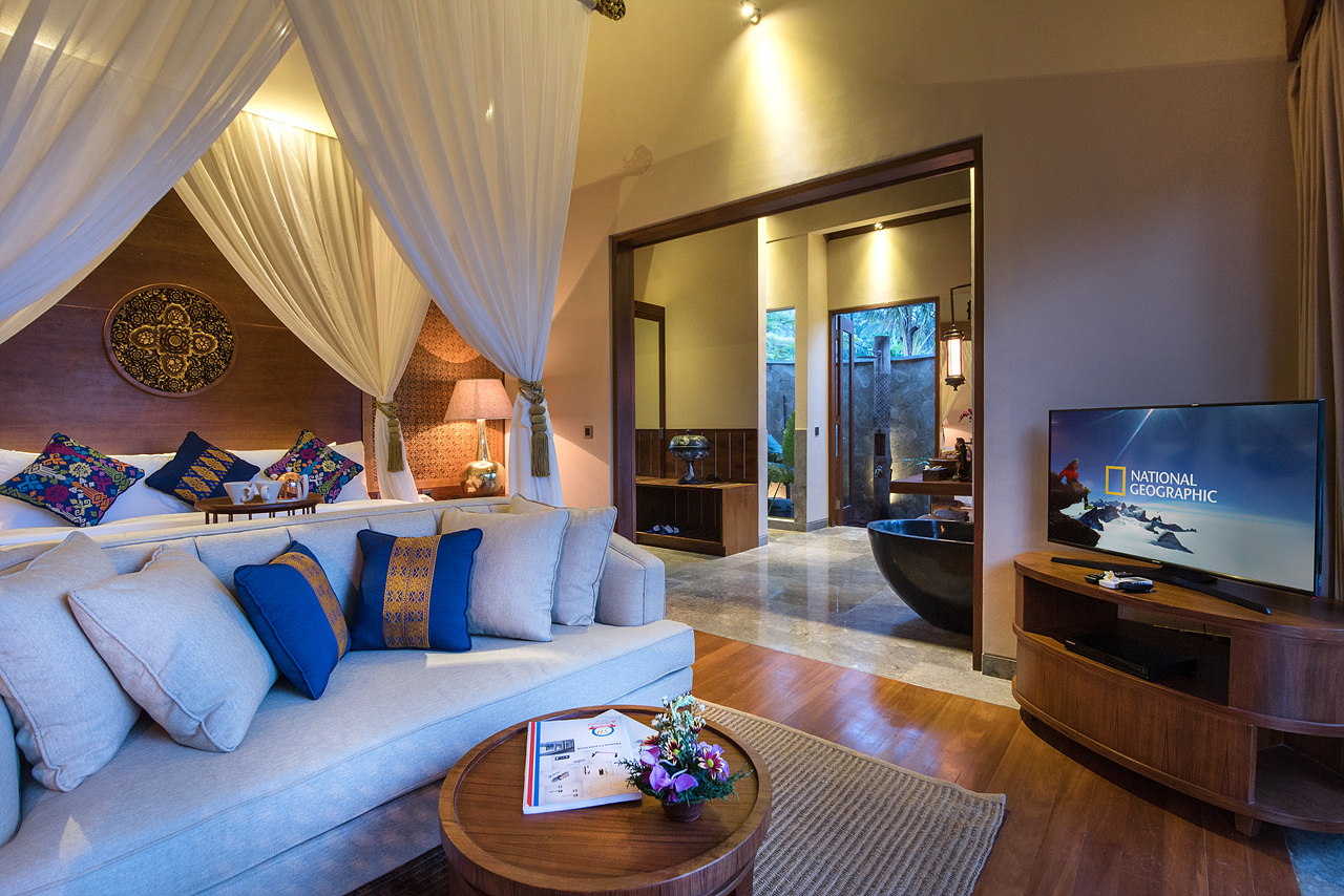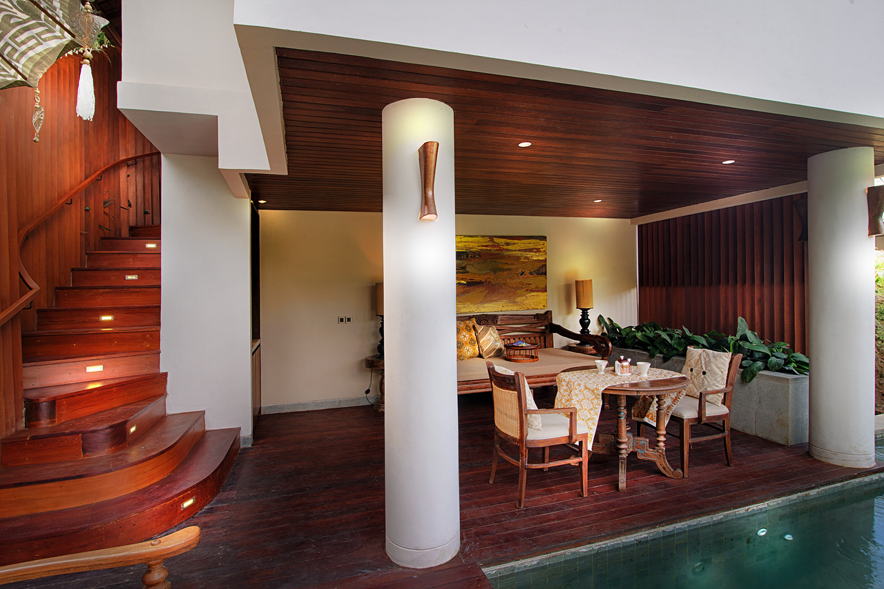 - 발리 전통 건축과 현대적 디자인이 조화를 이룬 세련된 인테리어.