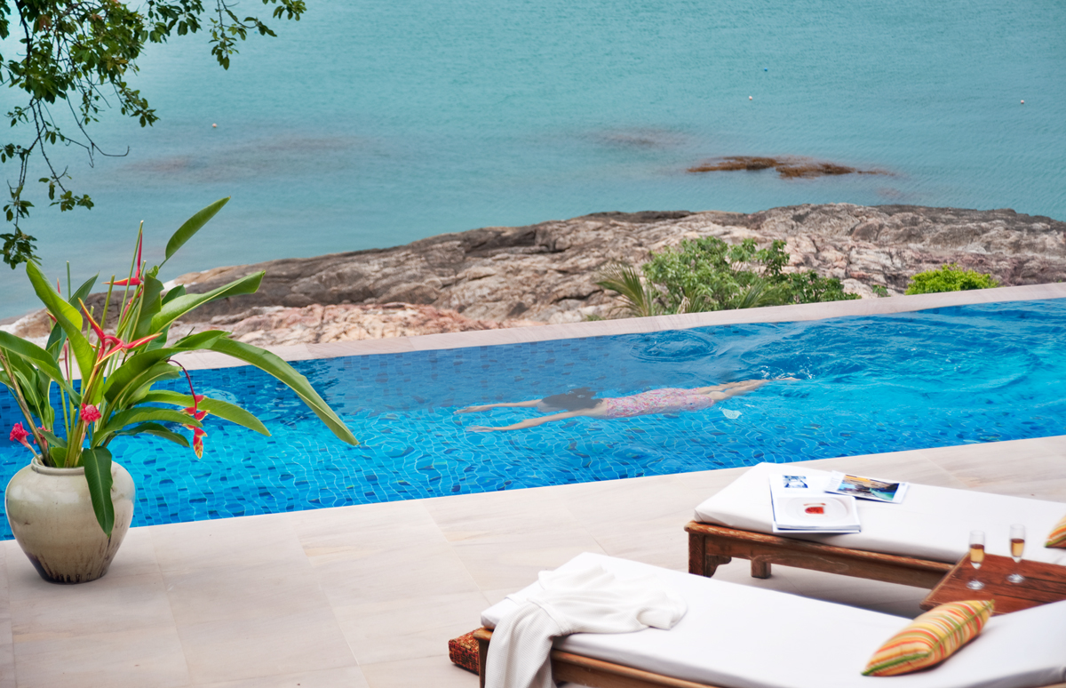 - 바다와 하나가 된 듯한 느낌을 주는 인피니티 풀에서의 여유로운 휴식.