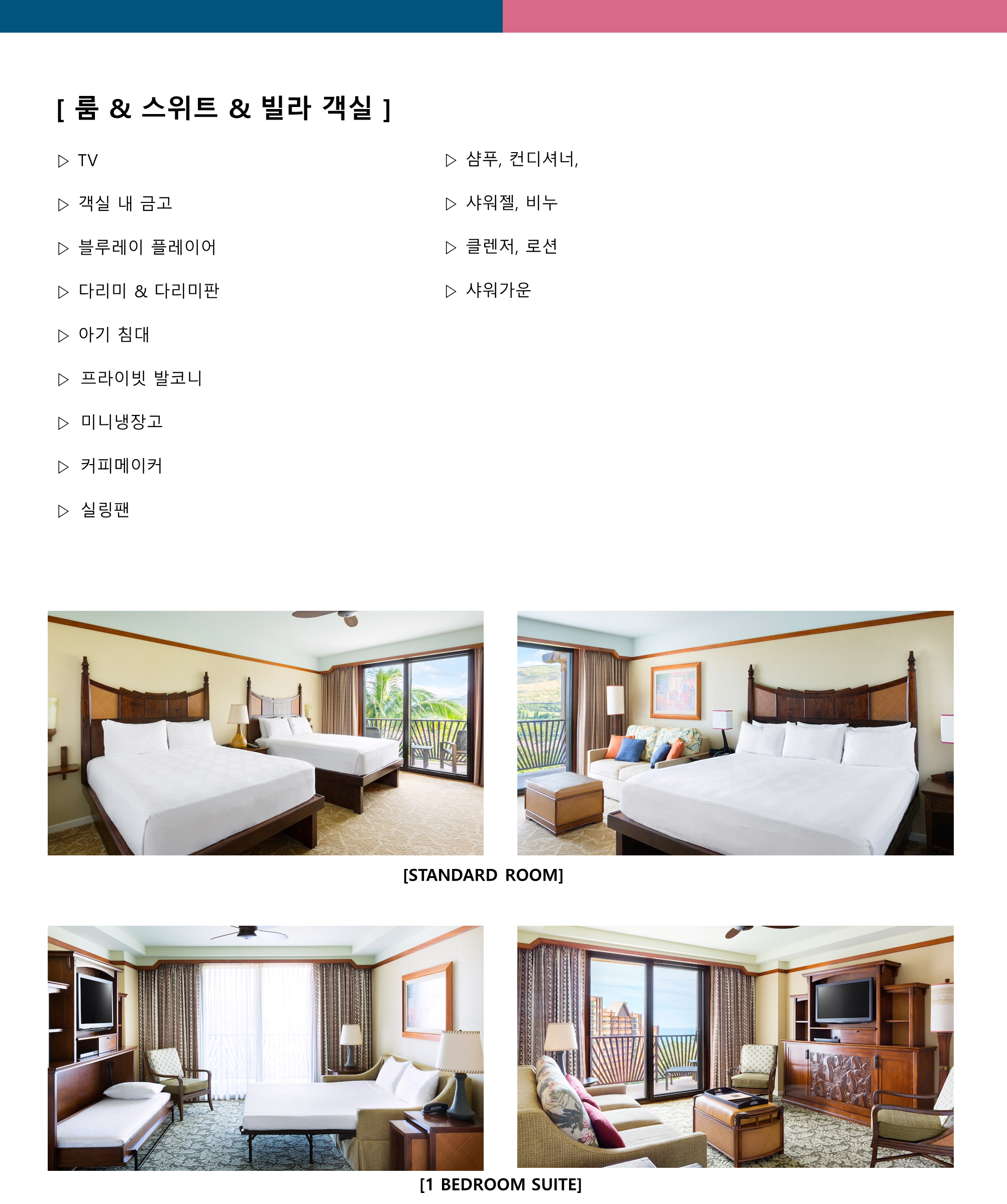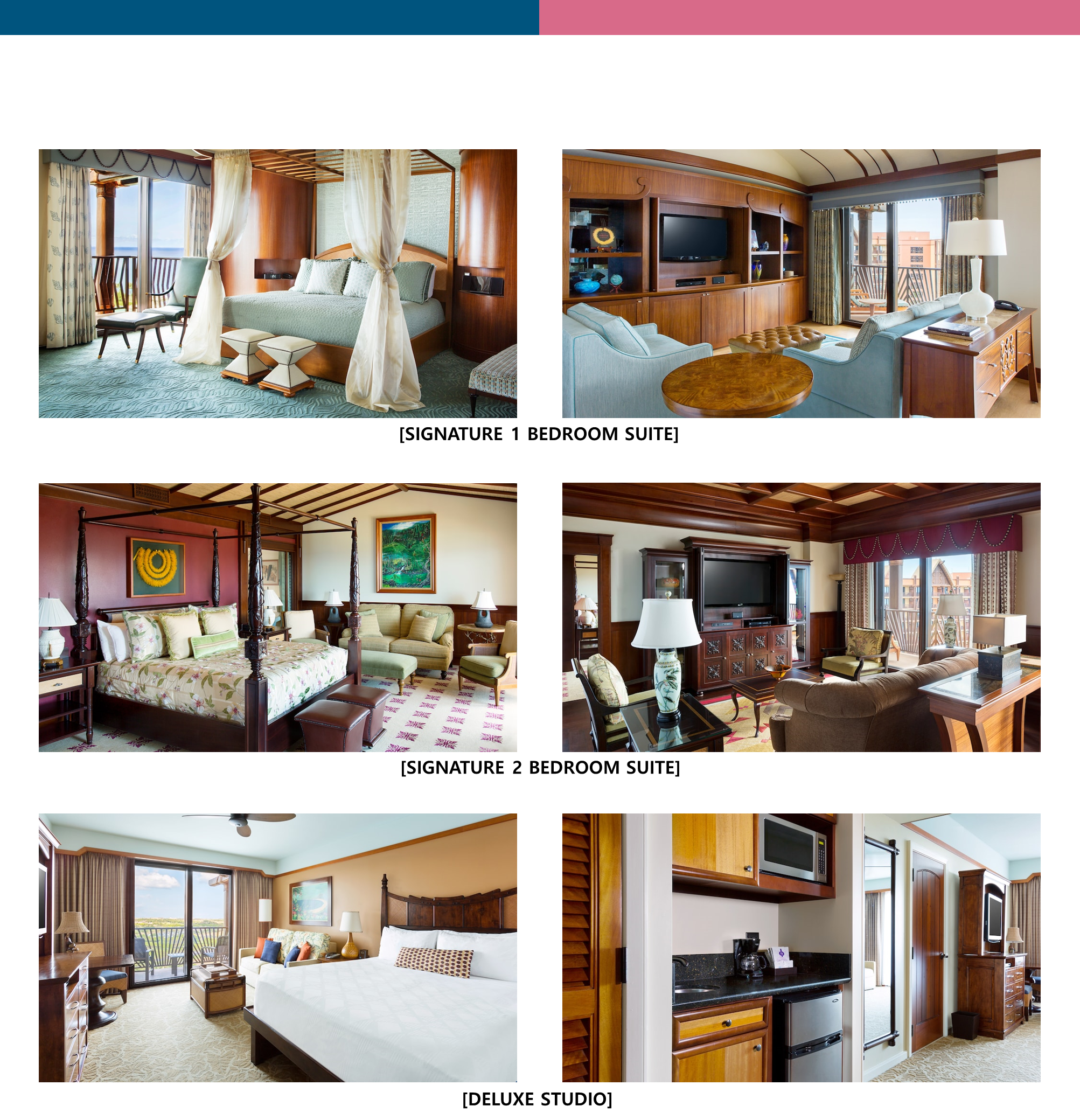 하와이 전통 스타일과 디즈니의 감성이 조화를 이룬 객실 & 스위트룸을 제공합니다.