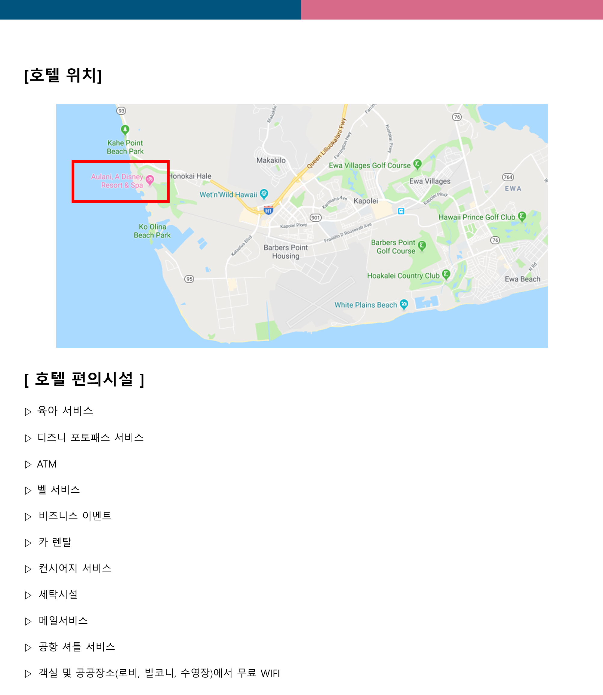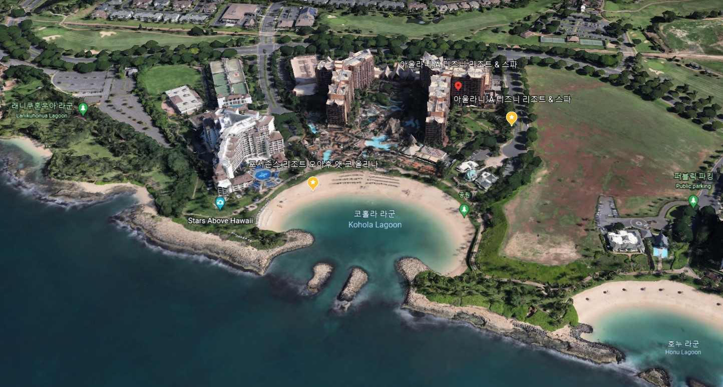 하와이 오아후섬(Oahu)의 코올리나(Ko Olina) 해안가에 위치한 디즈니 테마의 럭셔리 리조트입니다.