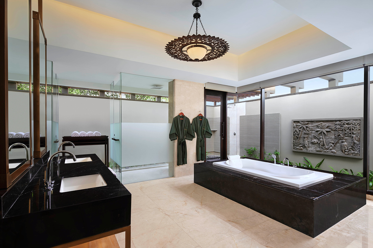 - 발리 전통 디자인과 현대적 럭셔리가 조화를 이룬 세련된 인테리어.