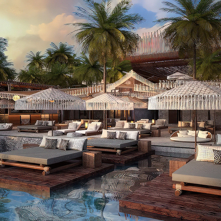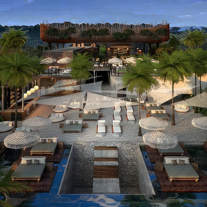 - 프라이빗 카바나와 럭셔리한 수영장 환경에서의 여유로운 휴식.