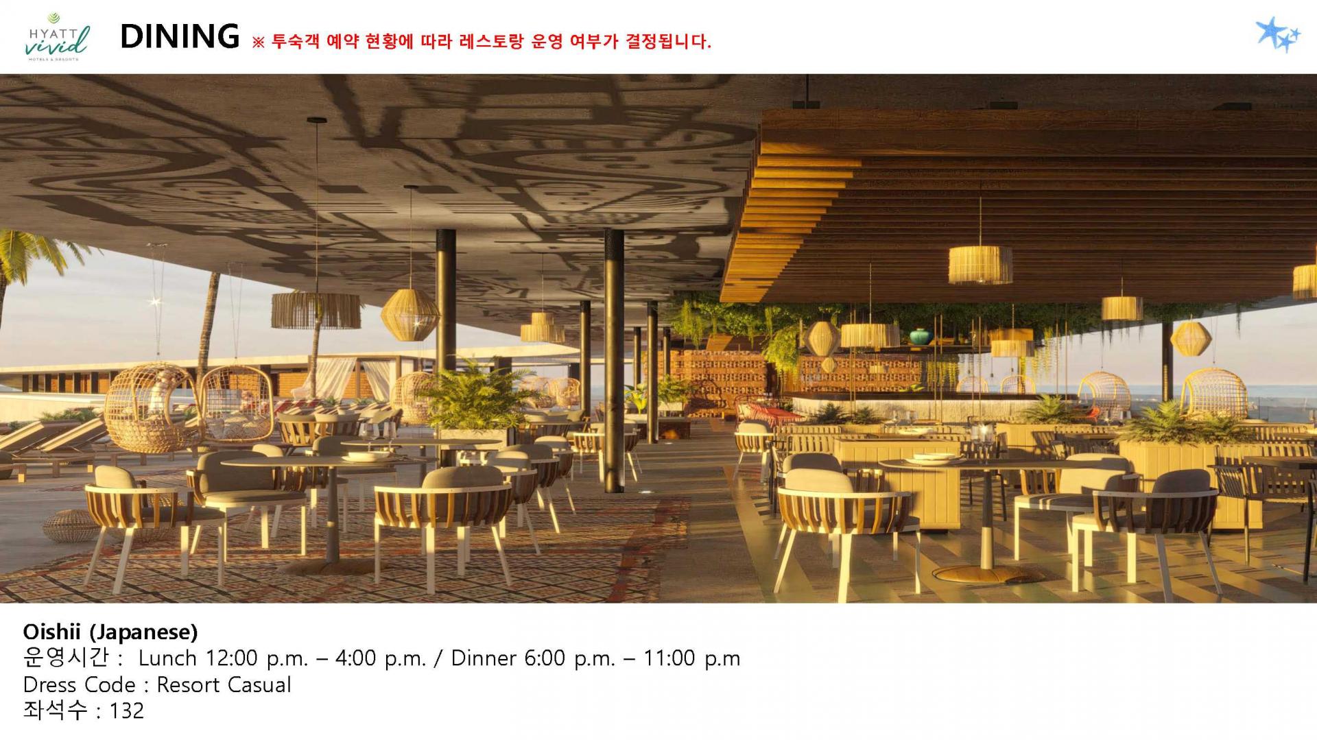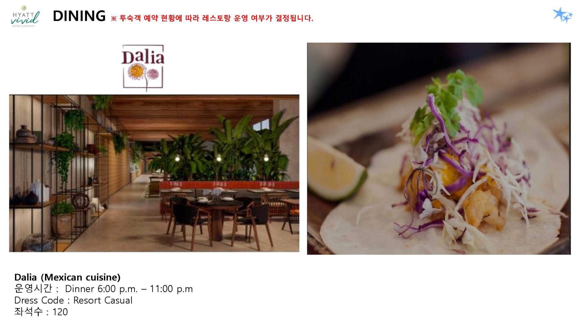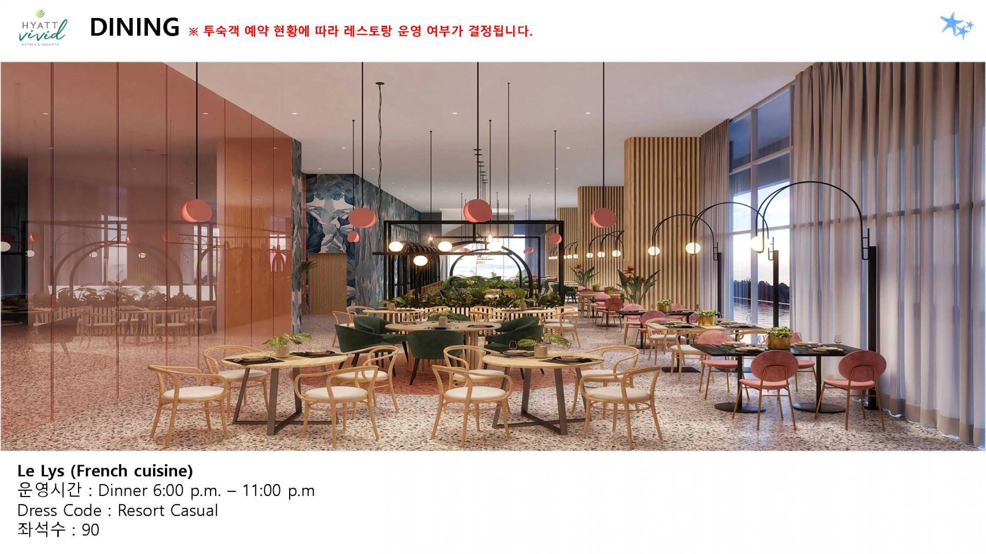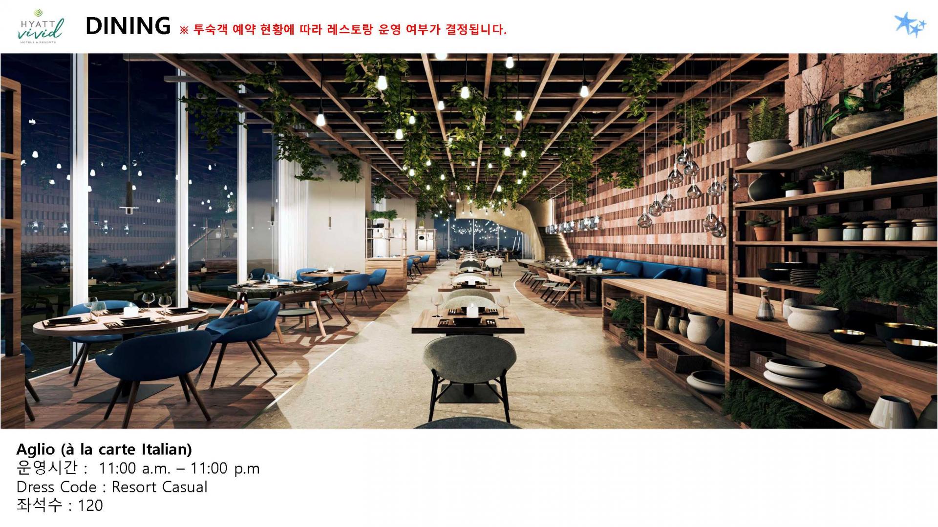 - Vivid Flavors: 지역 특산물과 글로벌 퀴진을 선보이는 시그니처 레스토랑.