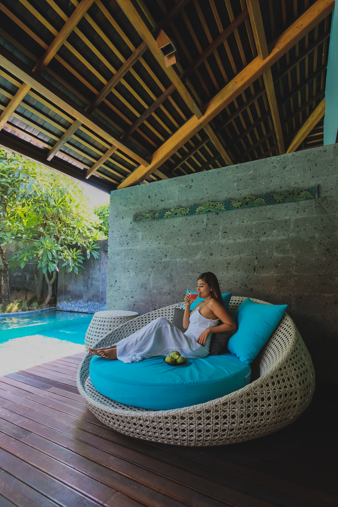 - 모던한 디자인과 전통 발리 스타일이 어우러진 인테리어.