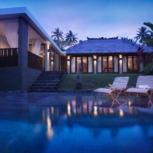 - 발리 전통 건축을 현대적 디자인과 조화시킨 세련된 공간.