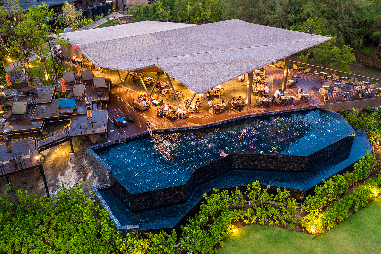 - 메인 인피니티 풀에서 안다만해의 파노라마 뷰 감상.