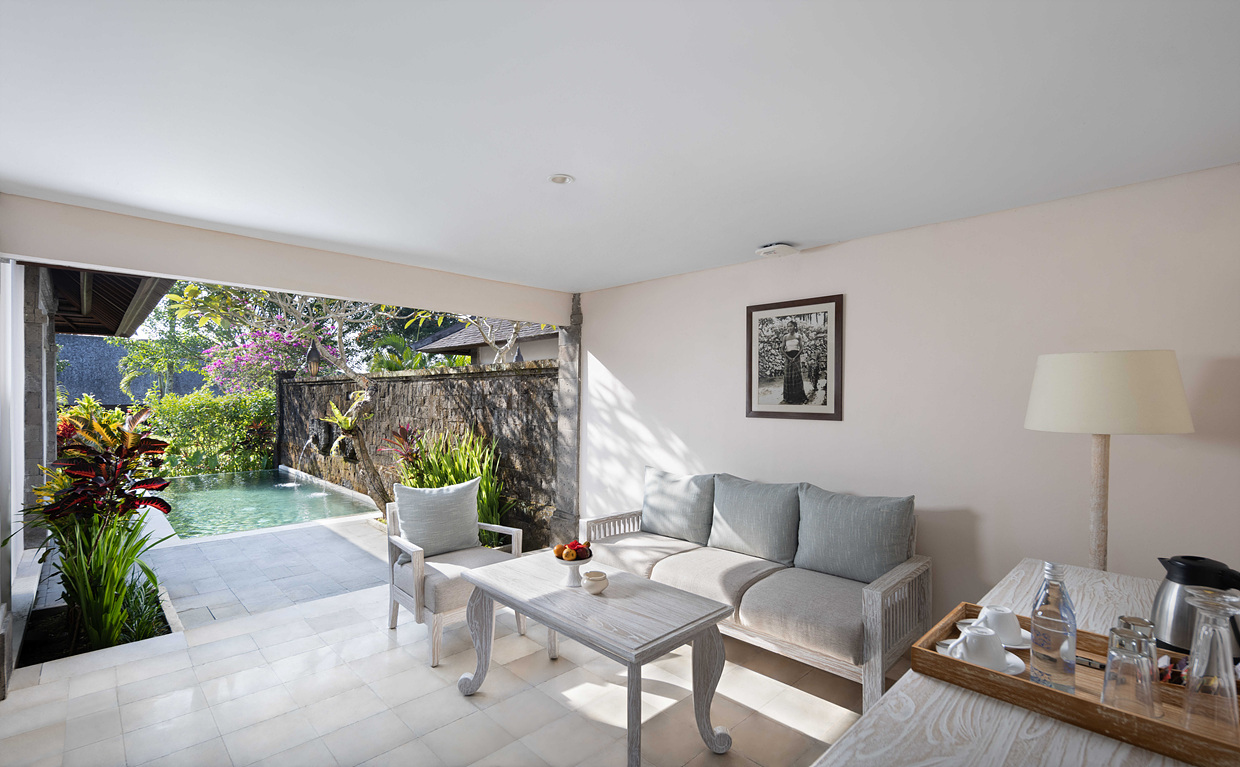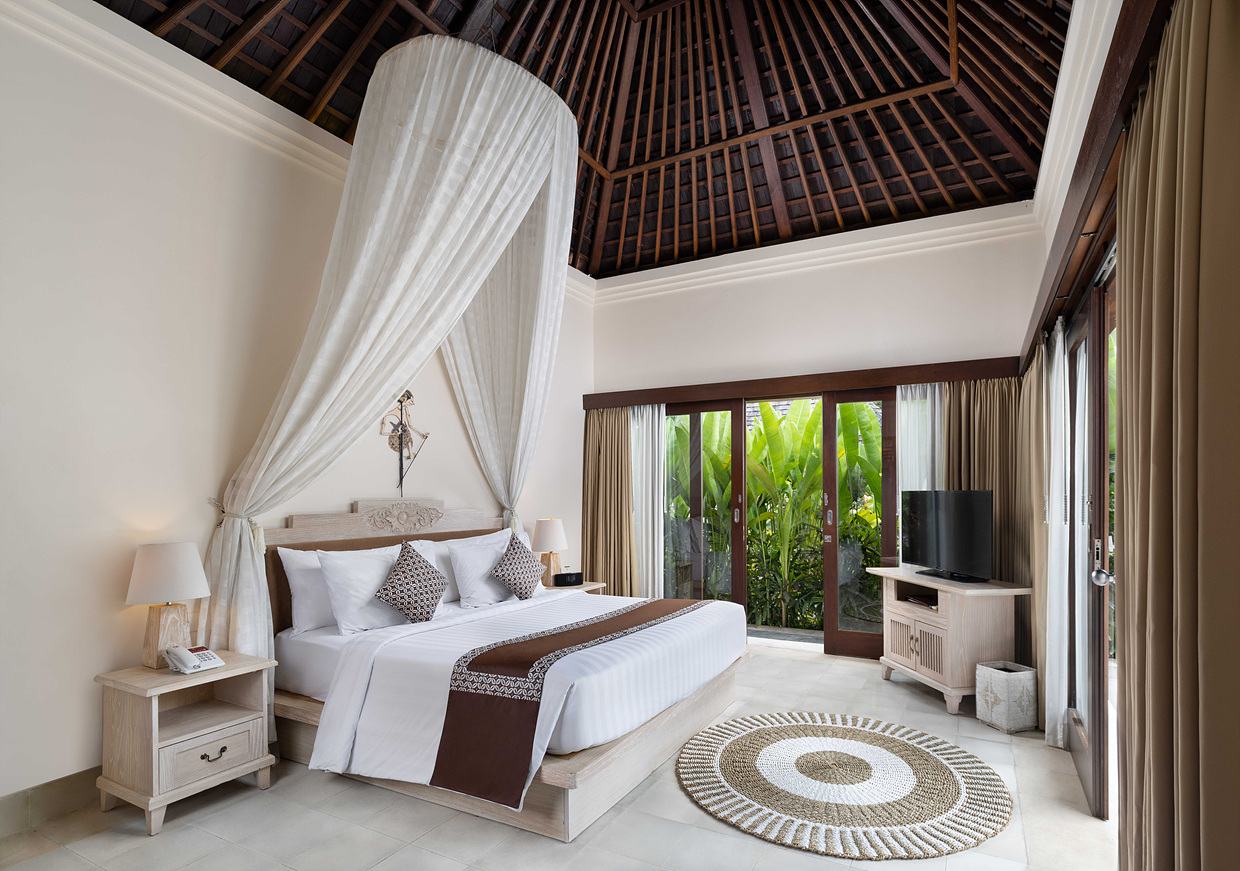 - 발리 전통 건축 양식을 현대적으로 해석한 객실과 빌라.