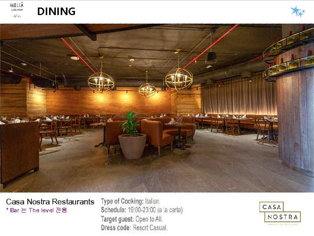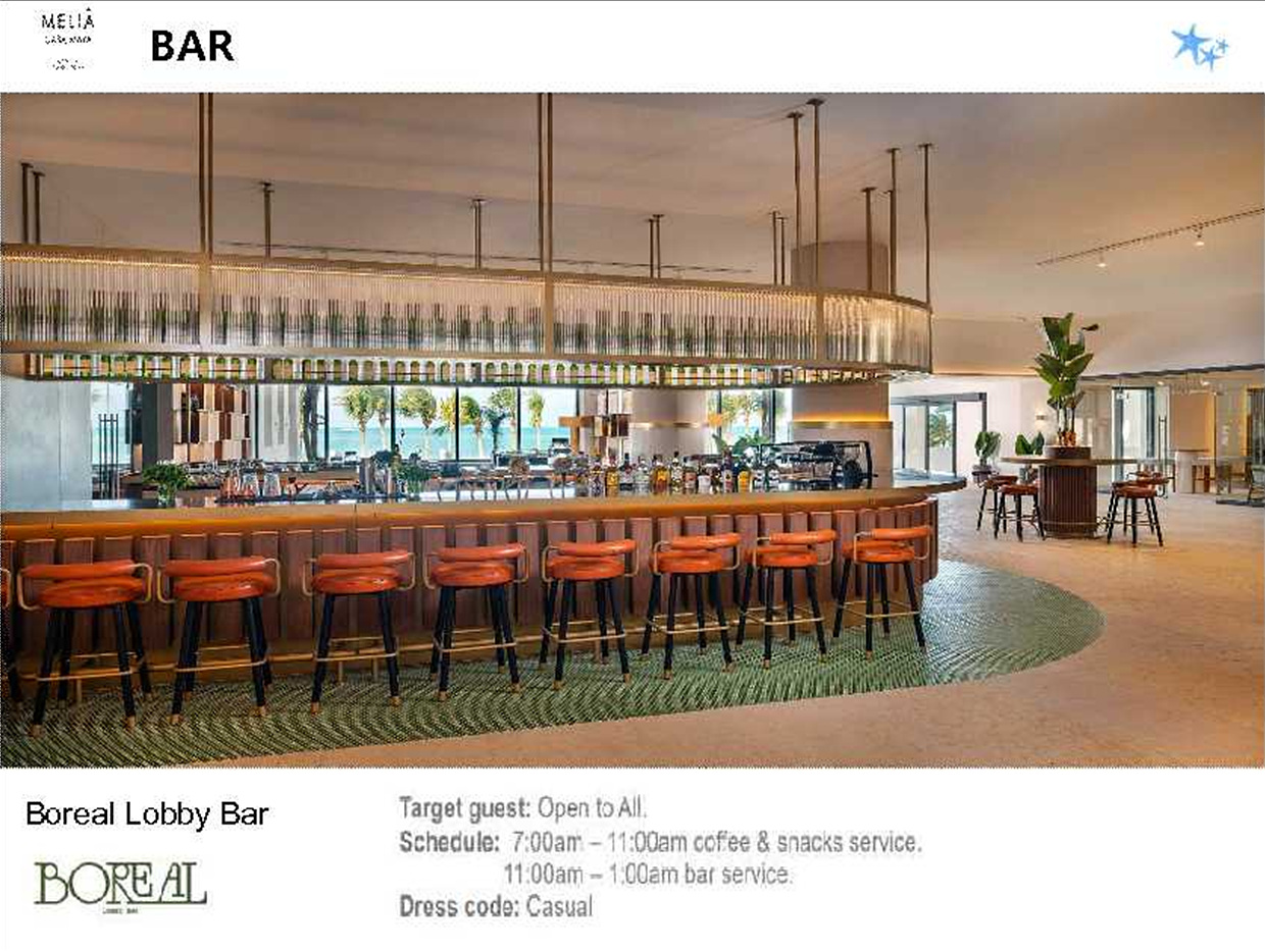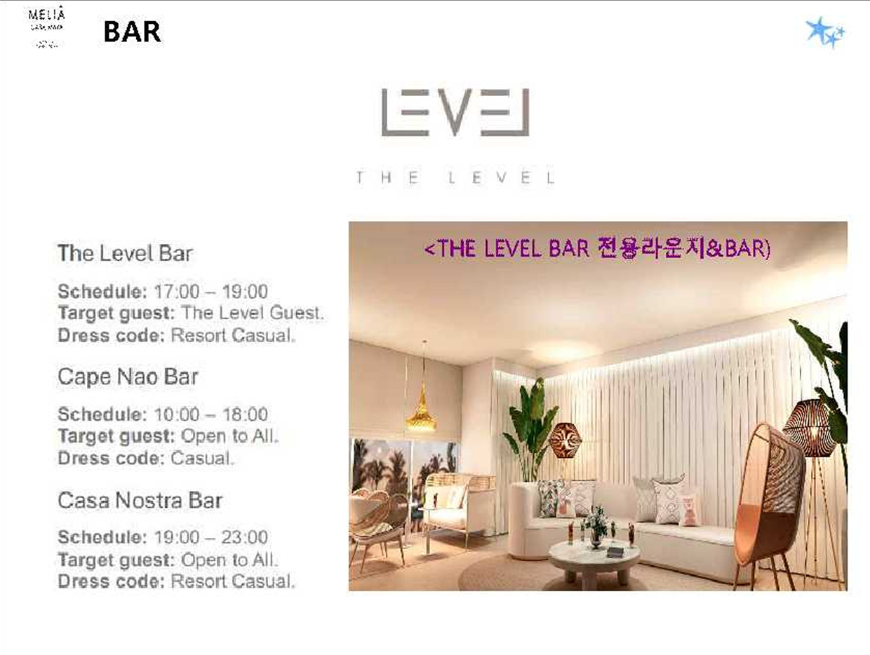 - Snack Bar & Poolside Grill : 가벼운 점심 & 시원한 칵테일/스낵