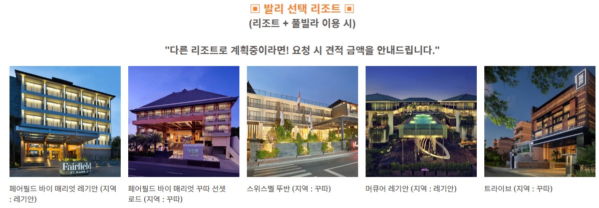 * 리조트 목록은 발리 지역 첫 페이지에서 확인하실 수 있습니다.