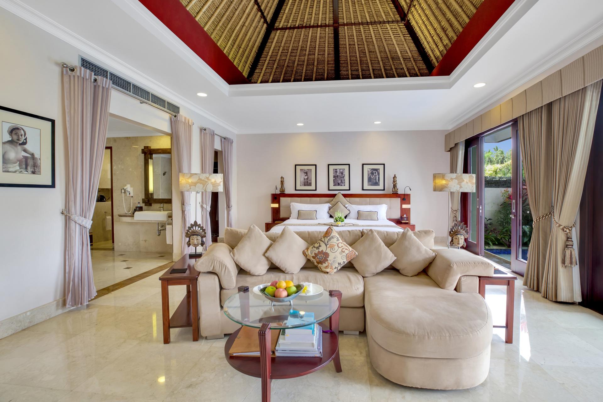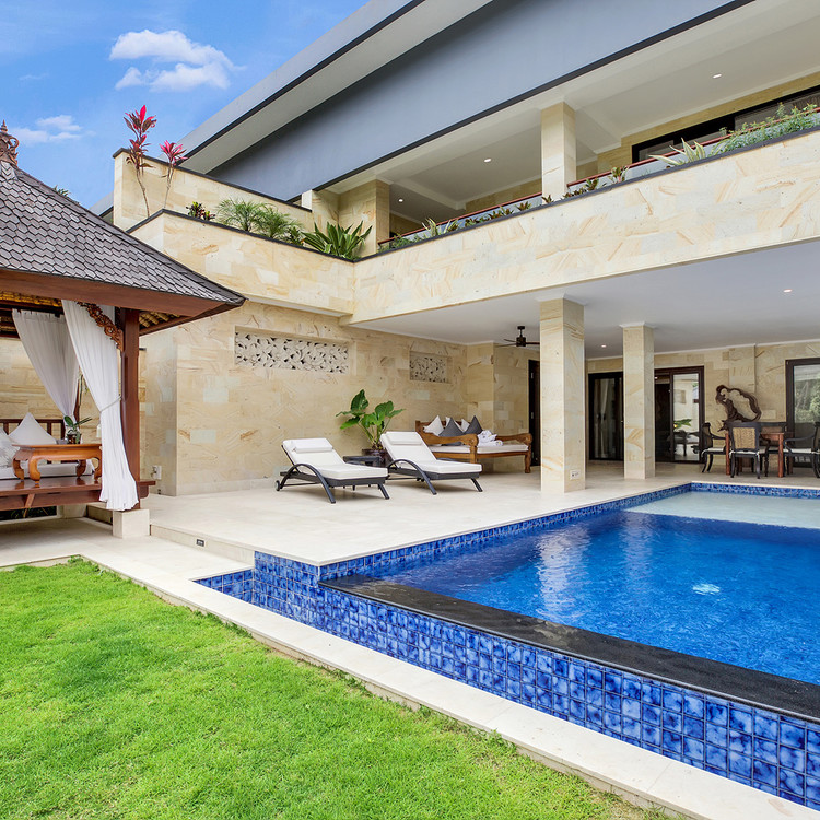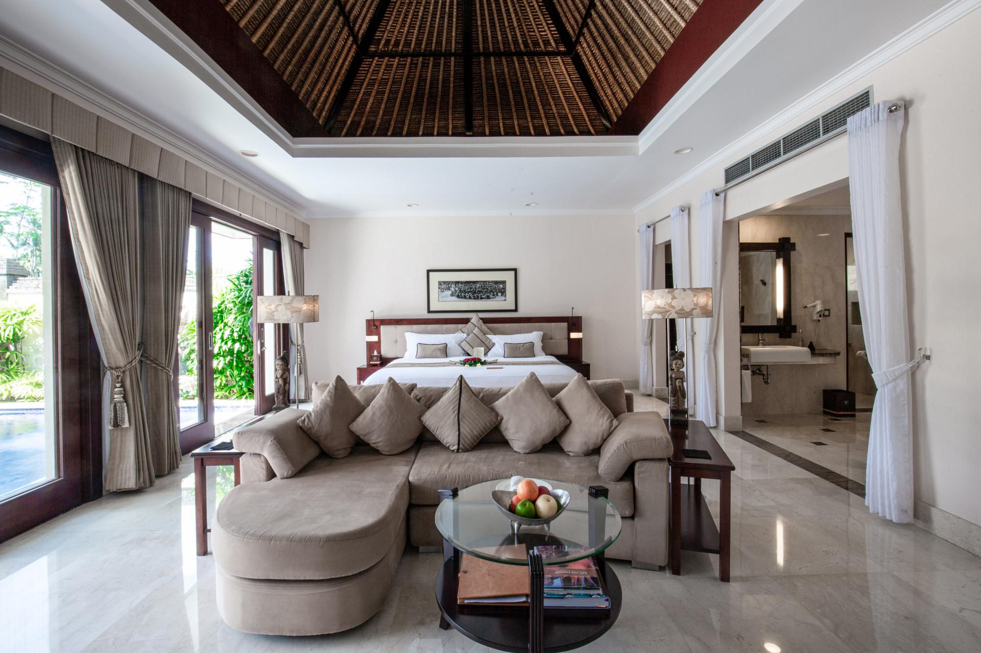 - 발리 전통 건축과 현대적 럭셔리 디자인이 조화를 이룬 세련된 인테리어.