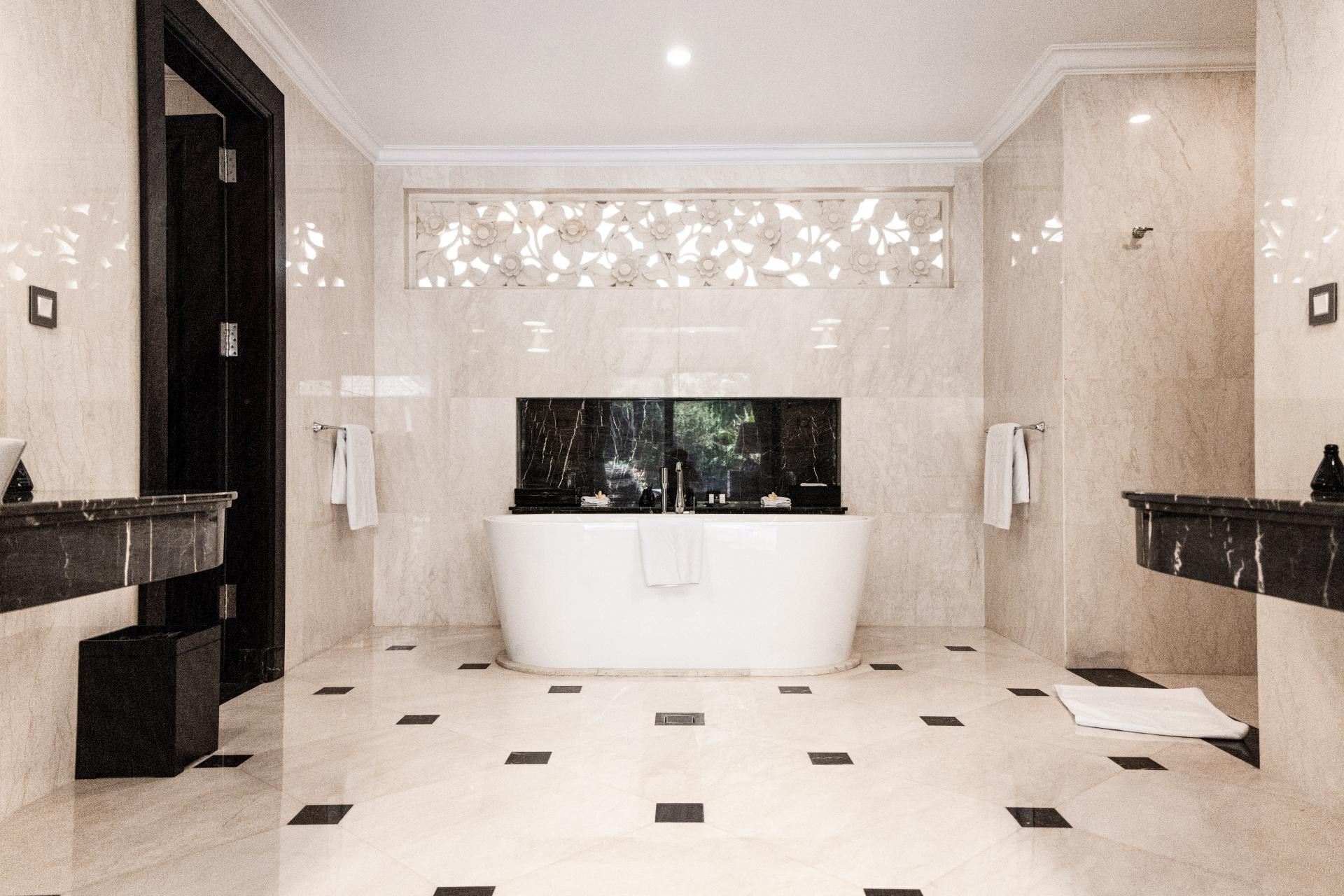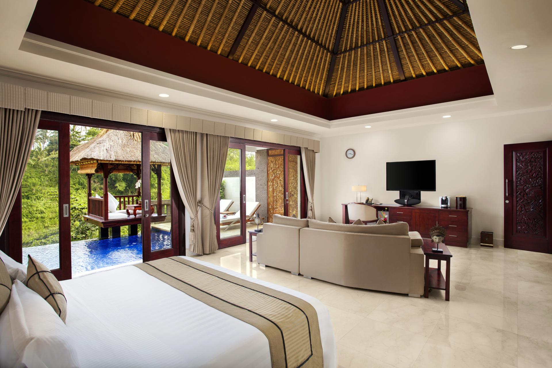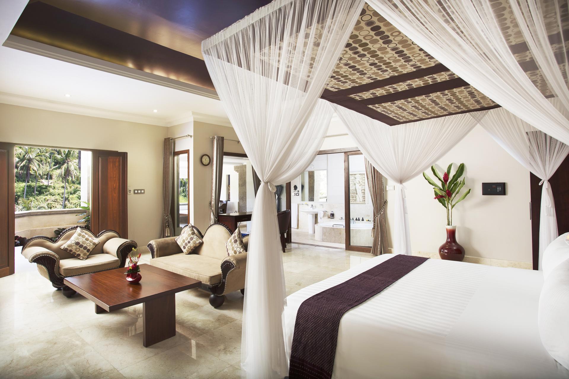 - 발리 전통 건축과 현대적 럭셔리 디자인이 조화를 이룬 세련된 인테리어.