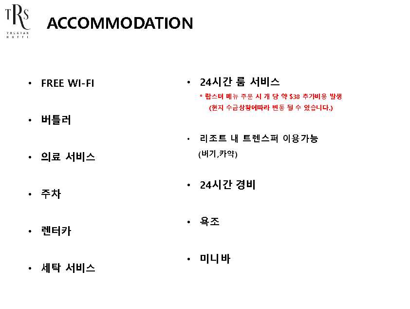 | 포함사항 | 1. 칸쿤 숙박요금. 2. 리조트 조.중.석식 및 음료, 주류 포함 (All Inclusive Resort) |