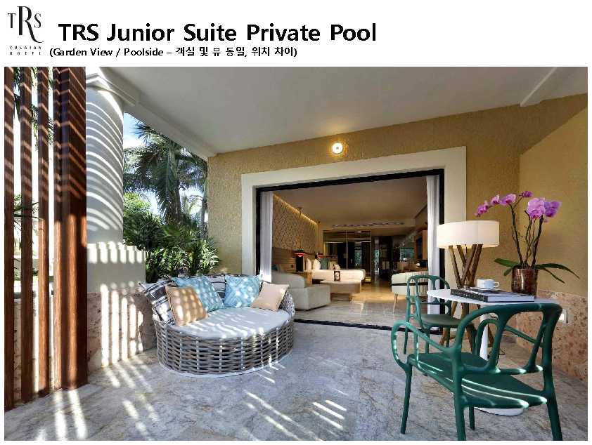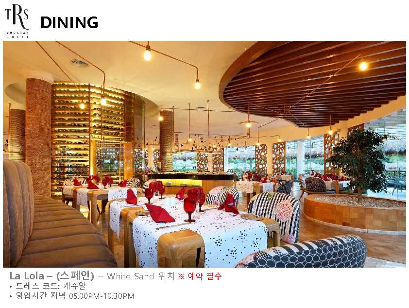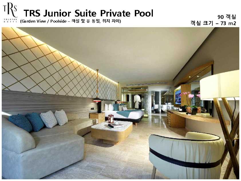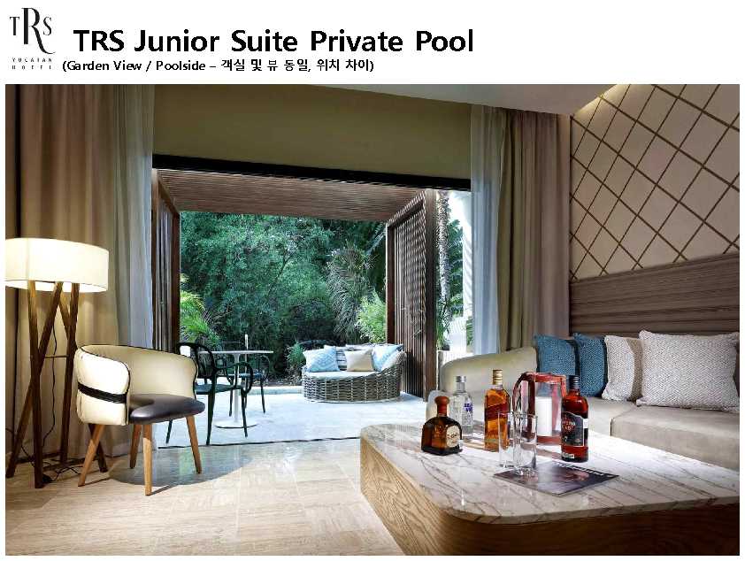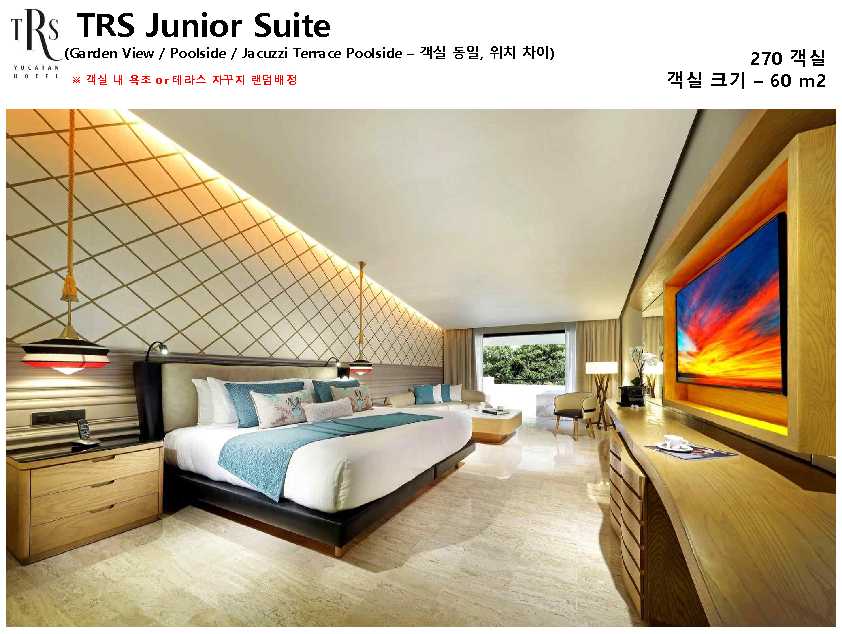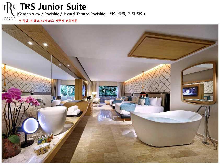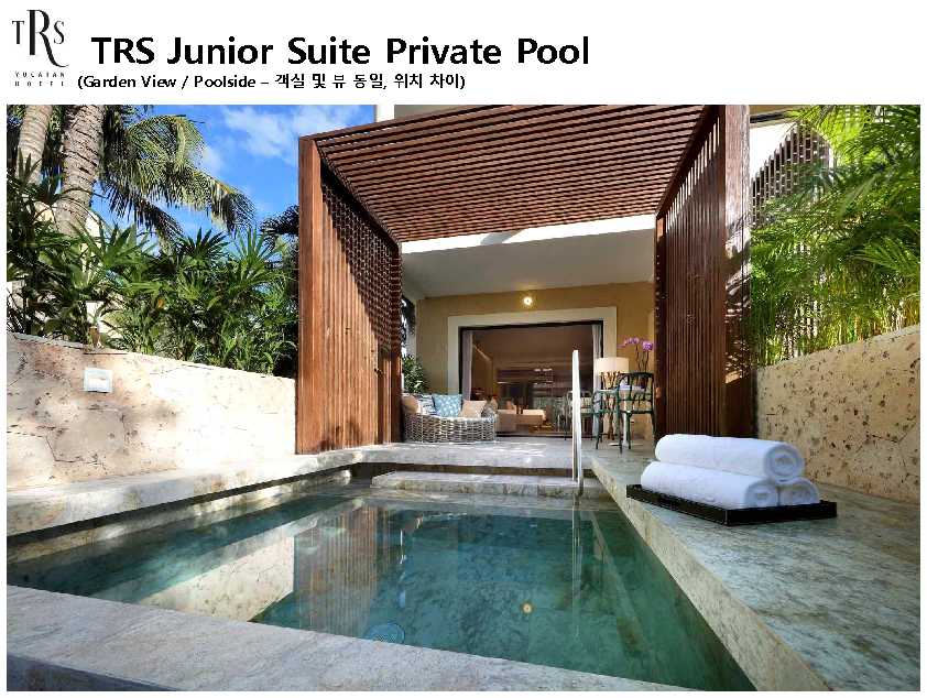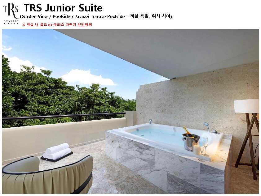 | 호텔 특징 | * 신규 건축한지 3년 정도 된 호텔입니다. 리비에라 마야 쪽에 있다보니 객실 모두가 자연친화적 입니다. * 객실 중에 풀런지 풀 객실은 자쿠지가 되는 시스템입니다. 두 사람이 독립적인 풀도 가질 수 있고, 외부 자쿠지를 가질 수 있는 장점이 있습니다. * 모든 객실에 욕조 구비 * 각 객실마다 양주 무제한 제공 (다 마신 후에는 추가로 무제한 제공 받으실 수 있으며, 객실 내 비치 된 술병을 가지고 나갈 수는 없습니다. 가져 가시길 원할 경우 1병당 $50불의 비용을 지불하시면 구입하실 수 있습니다. ※ 본 프로모션은 사전 공지 없이 변동 될 수 있습니다. ) * 이 호텔의 가장 큰 특징은 지중해식 호텔 레이아웃 입니다. 전혀 리비에라 마야지역에 있는 것 같지 않고, 지중해에 온 느낌의 모든 인테리어 들이 좋습니다. 약간 수영장이 위치한 곳도 절벽 위에 있는 느낌이고, 바다에서 유입된 물로 만든 바다풀장은 앞에 있는 암석들이 아주 보기 좋습니다. * 대부분의 숙박객들이 유럽에서 온 젊은 층의 손님들이 대부분입니다. * forbes잡지에서 멕시코에서 가장 로맨틱한 호텔이라는 명성을 부과한 것도 있습니다. * 이곳도 그랜드 팔라디움과 같이 있지만 coral처럼 붙어 있는 것은 아니고, 입구가 틀립니다. 다만 TRS 손님은 그랜드 팔라디움의 모든 시설을 쓰실 수 있습니다. 그래서 그곳으로 이동하시는 방법은 카트 차량과 배로 이동 하시면 됩니다. 객실 입구마다 버틀러가 있기 때문에, 차량은 편하게 버틀러한테 요청하시면 됩니다. 호텔 자체 앱을 내리시면, 카트를 우버처럼 부르는 방식도 있습니다. * 전 객실 버틀러 서비스 이용 * 방갈로 객실은 독립적이면서 로맨틱하고, 각 방갈로에 본인 카누 하나씩을 드려서 15분~45분까지 본인이 그 코스를 따라서 잠시 관광을 하실 수 도 있습니다. * 파도가 거의 없는 평온한 카리브해 입니다. |