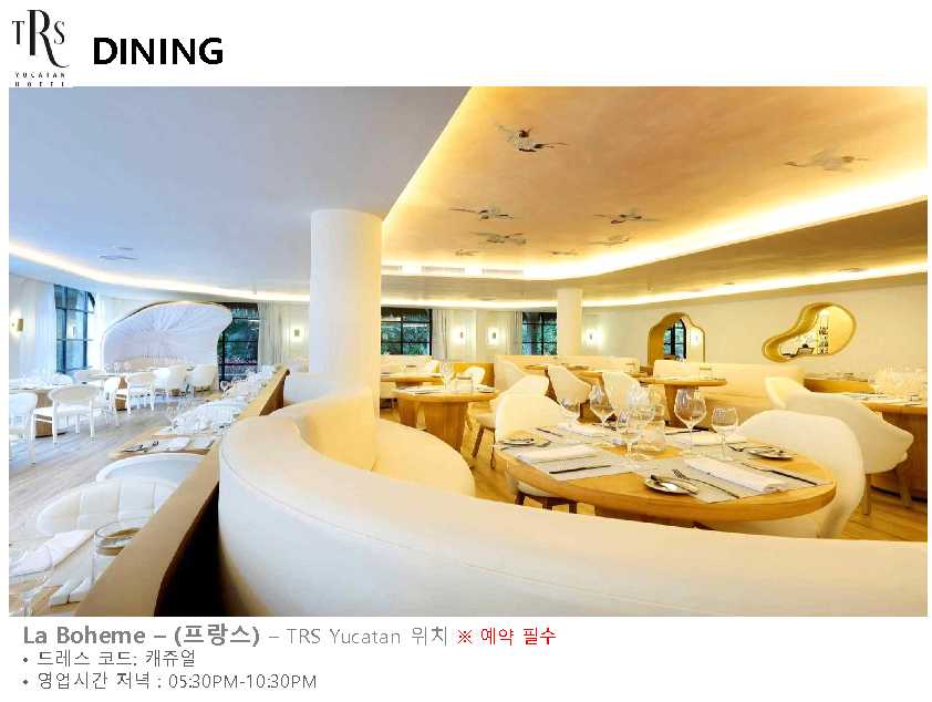 멕시코 리비에라 마야의 푸른 바다와 열대 자연 속에 자리한 TRS Yucatan Hotel은 성인 전용 럭셔리 리조트로, 프라이빗한 휴식과 맞춤형 올인클루시브 경험을 제공합니다. 허니문, 커플 여행, 또는 특별한 휴양을 찾는 분들에게 완벽한 선택입니다.