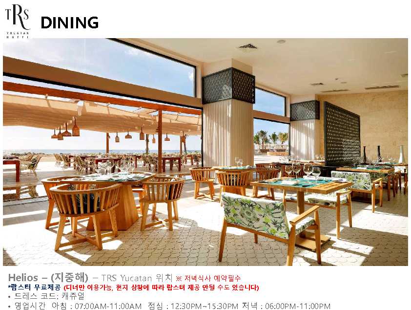 - Helios: 해변을 배경으로 한 지중해 스타일의 다이닝 공간.
