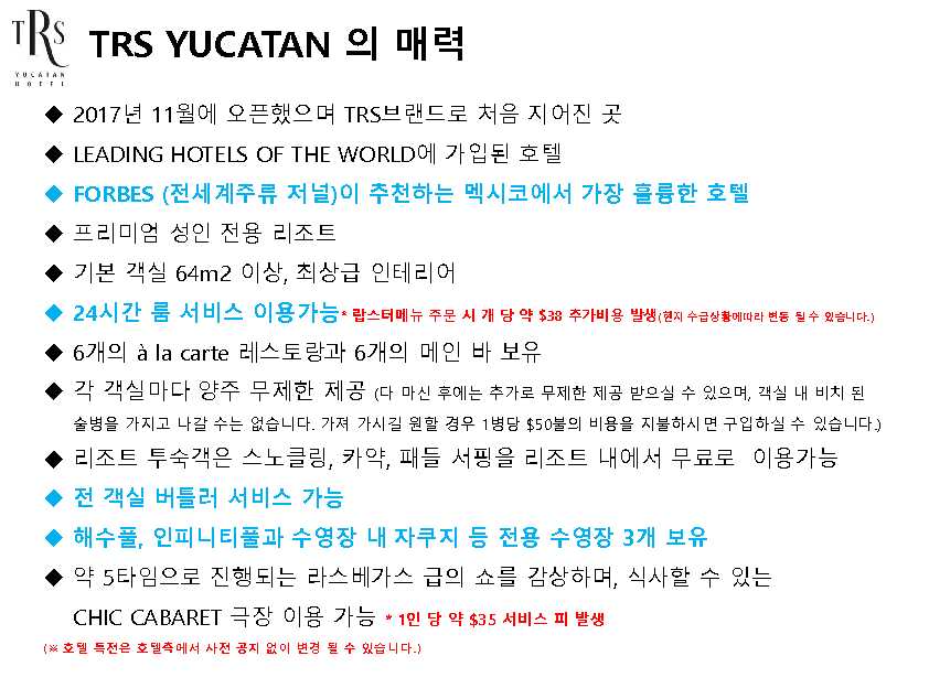 ※ 칸쿤 호텔은 날짜 별 금액 변동이 심한 지역으로 반드시 담당자 확인 후 진행하심을 요청 드립니다.