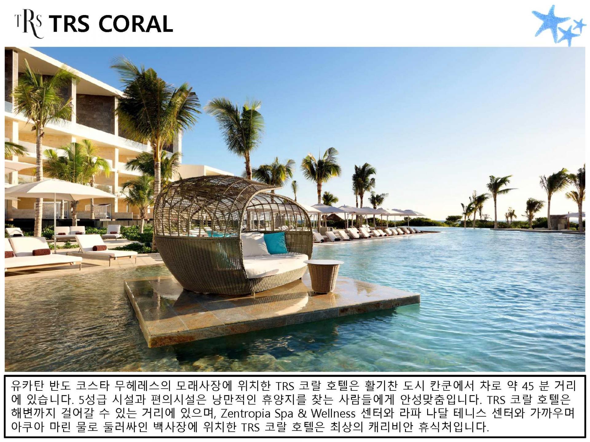 카리브해의 맑은 바다와 눈부신 백사장을 배경으로 한 TRS Coral Hotel은 성인 전용 럭셔리 리조트로, 프라이빗하고 세련된 휴양을 제공합니다. 허니문, 커플 여행, 또는 특별한 휴식을 원하는 분들에게 완벽한 선택입니다.