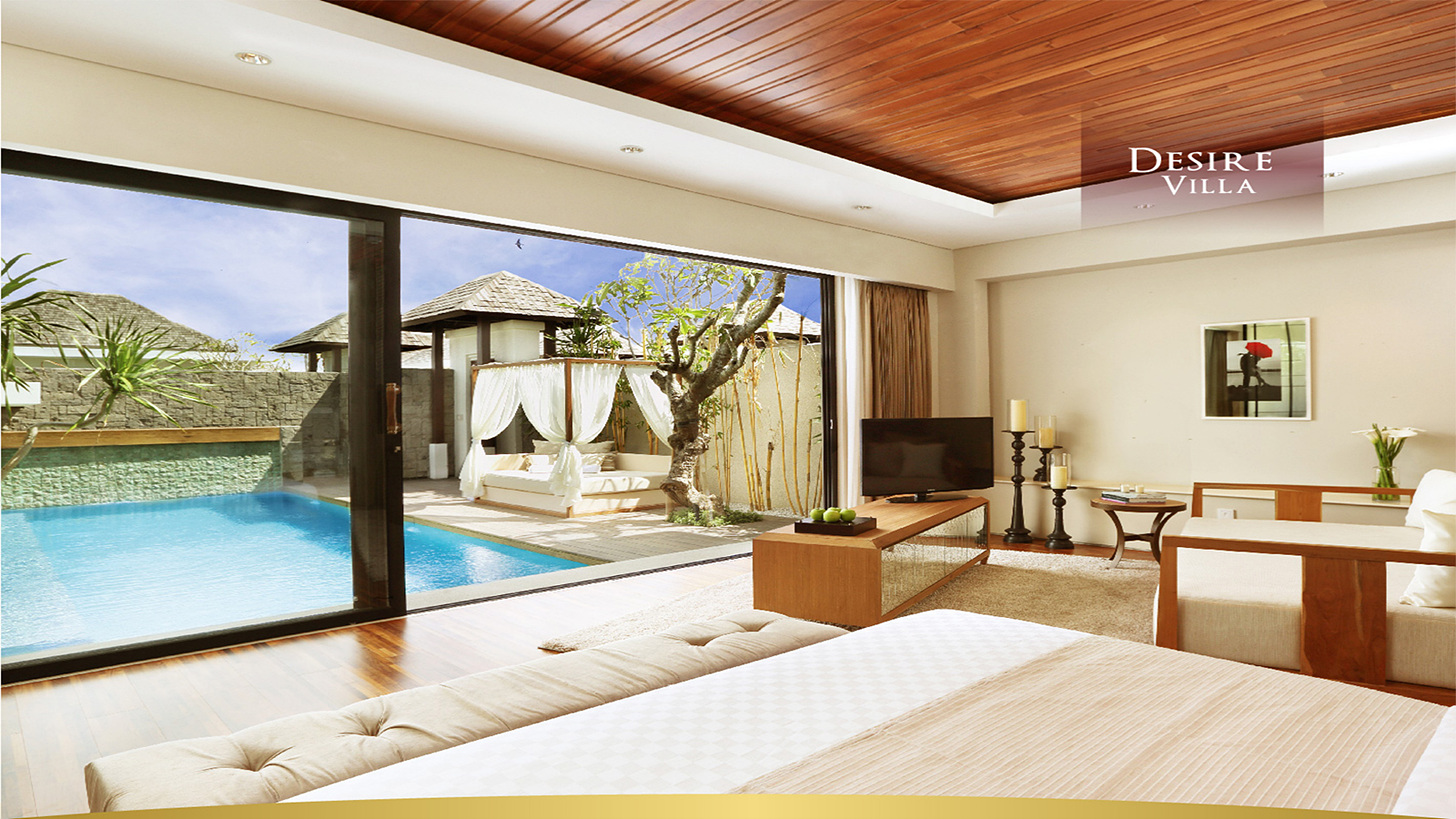 - 1베드룸 프라이빗 풀빌라로 설계된 각 빌라는 세 가지 로맨틱 테마 제공: Desire, Mystique, Temptation.