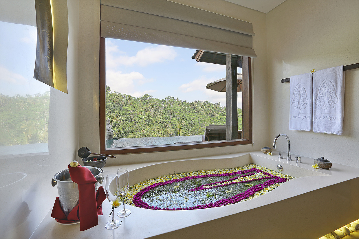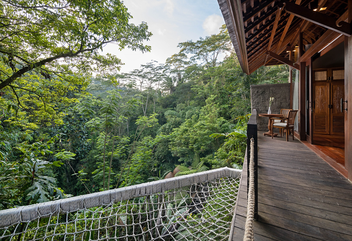 - 열대 숲과 계곡 전망을 감상할 수 있는 넓고 세련된 객실.