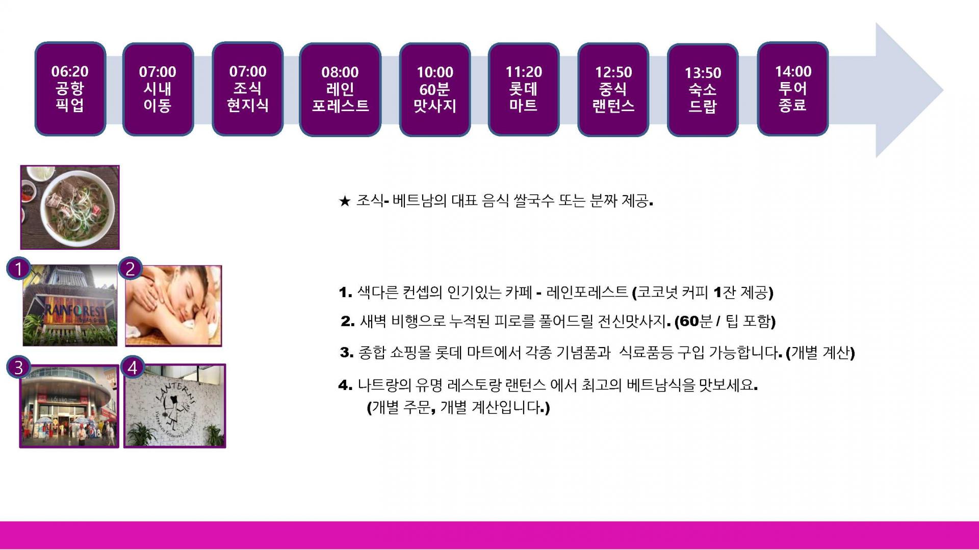 - 이른 아침 나트랑에 도착하는 고객님을 위한 모닝투어 입니다.